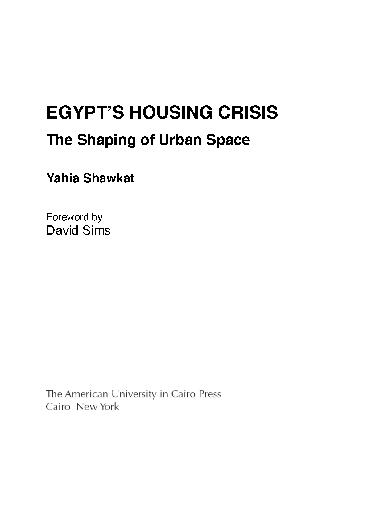 Egypt's Housing Crisis: The Shaping of Urban Space by Yahia Shawkat - 1st Edition