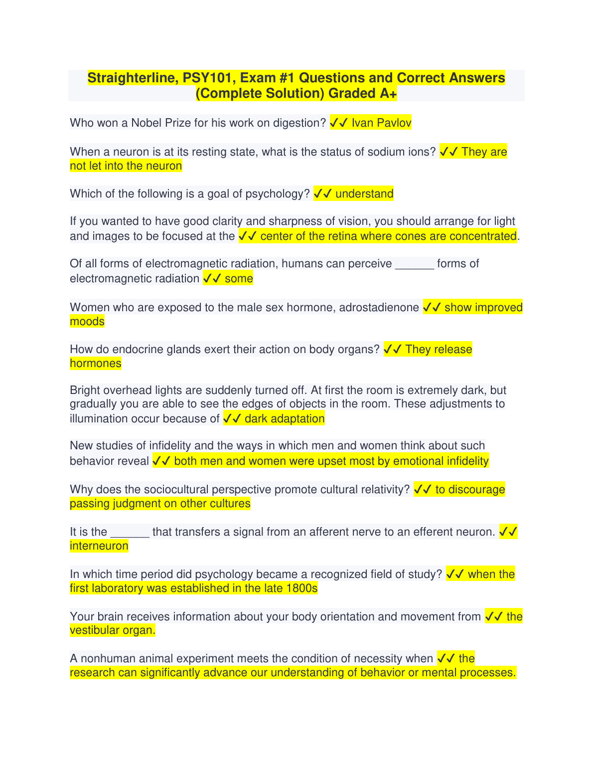 Straighterline, PSY101, Exam #1 Questions and Correct Answers (Complete Solution) Graded A+. DOWNLOAD on www.Hackedexams.com INSTANTLY.