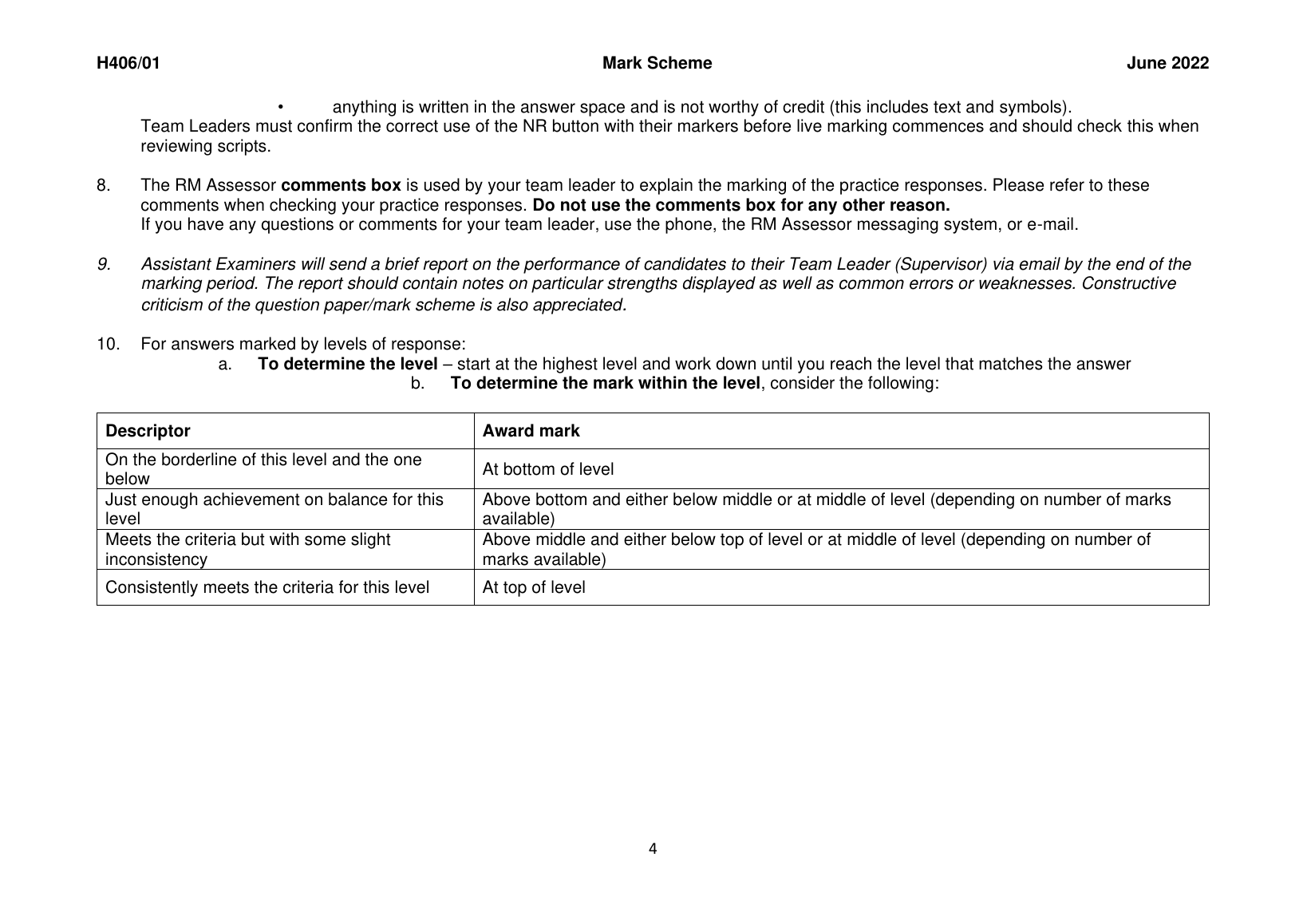 OCR A LEVEL DESIGN AND TECHNOLOGY: Product Design PAPER 1 JUNE 2022 MARK SCHEME (H406/01: Principles of Product Design)