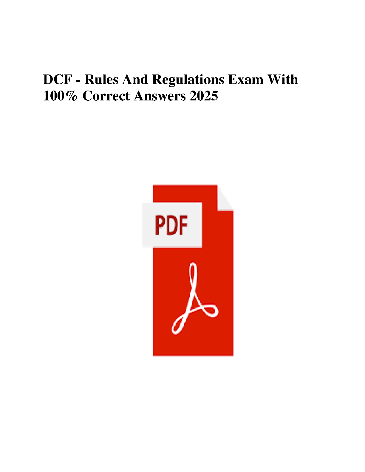 Conquer your DCF Rules and Regulations exam with confidence! This comprehensive resource provides 100% accurate answers to help you pass on your first attempt and avoid costly resits. Designed for the 2024-2025 academic year, this invaluable study guide ensures exam success.