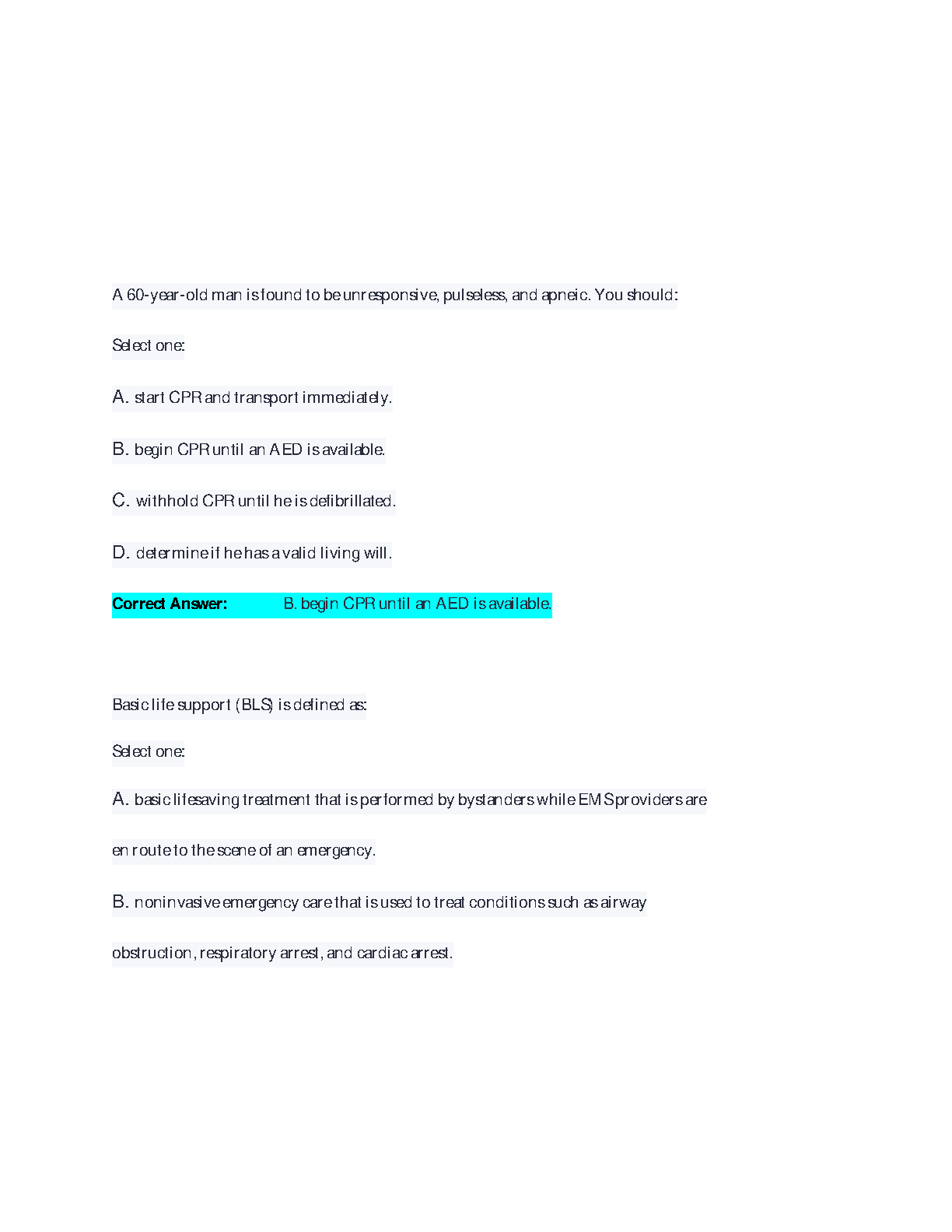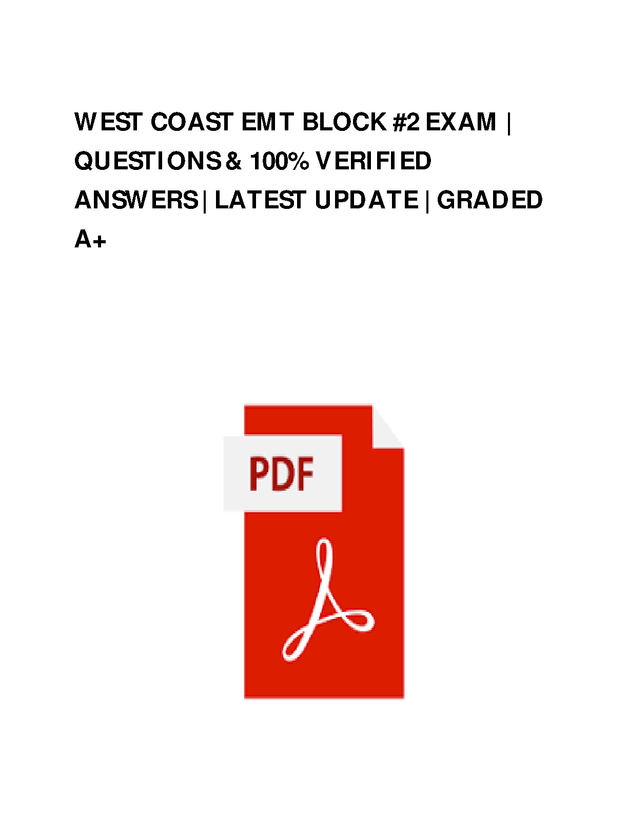 Ace your West Coast EMT Block #2 exam with this comprehensive study guide. Includes 100% verified questions and answers, updated for the 2024/2025 academic year. This resource is designed to help you achieve a perfect score and avoid resits. Download your PDF copy now!