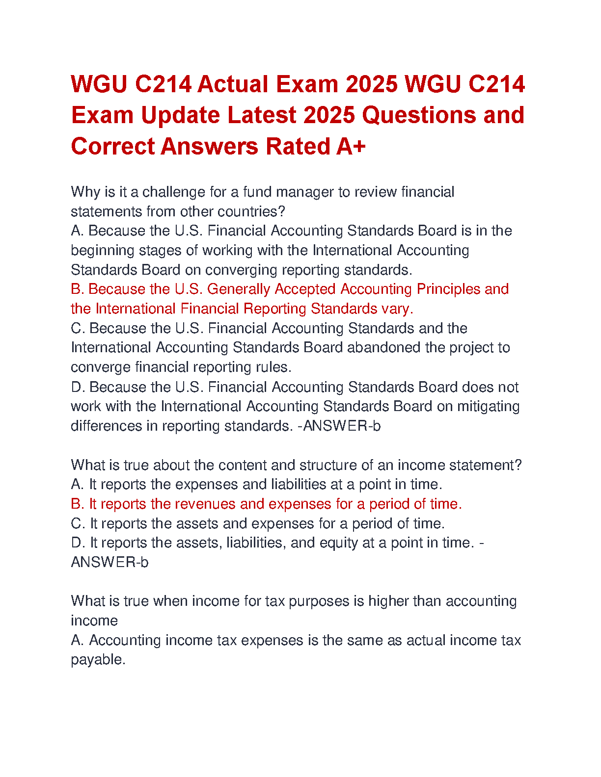 Ace your WGU C214 exam with this comprehensive resource featuring the latest 2025 questions and A+ rated answers. Designed to help students pass on their first try and avoid resits. This study guide ensures exam readiness and boosts confidence.