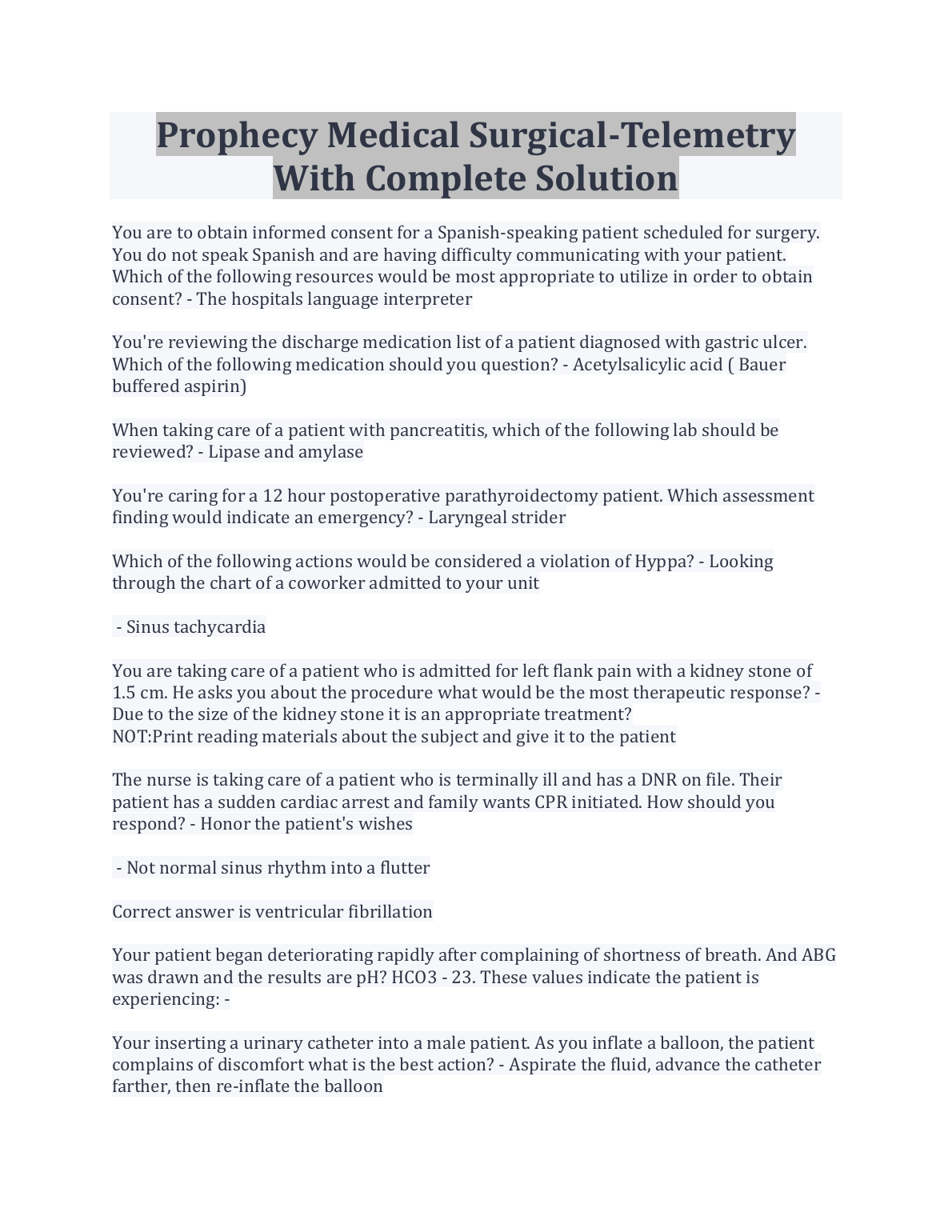 Prophecy Medical Surgical Telemetry With Complete Solution 2023/2024. DOWNLOAD on www.Hackedexams.com INSTANTLY.