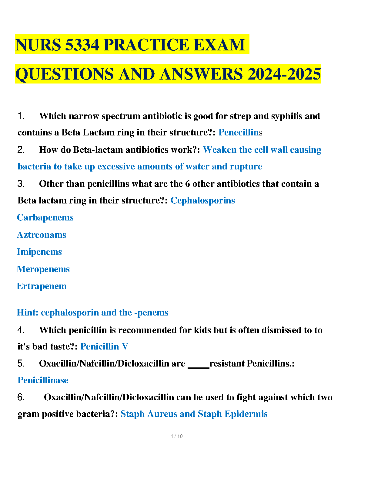 Prepare for your NURS 5334 exam with confidence using this comprehensive practice exam. This resource contains questions and answers covering key concepts to help you achieve exam success and avoid resits. Designed for the 2024-2025 academic year.