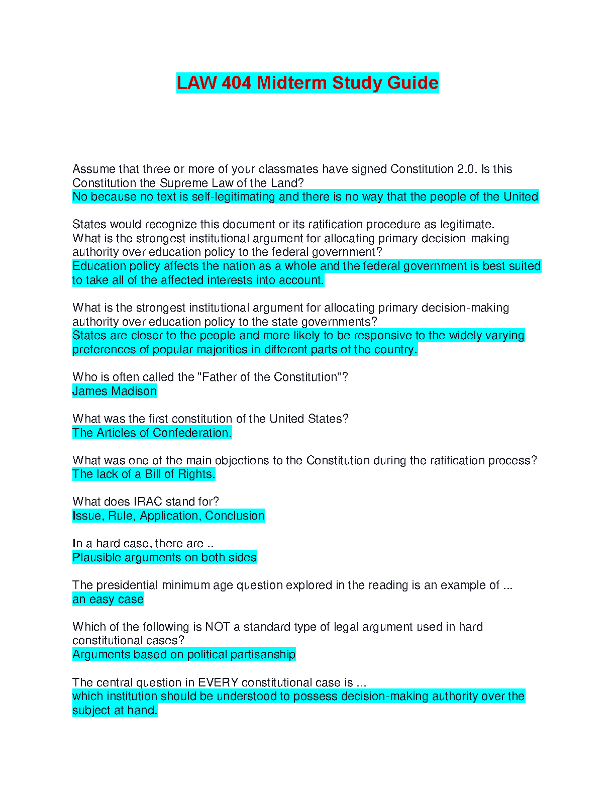 LAW 404 Midterm Study Guide: A 2024-2025 Guide to Exam Success