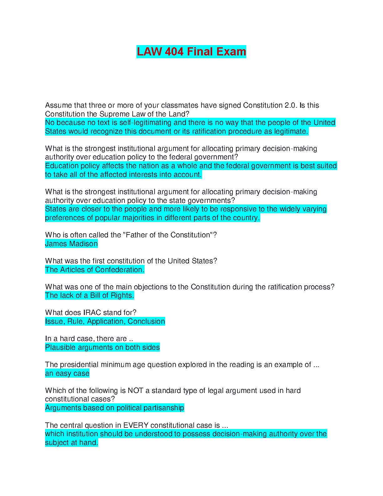 LAW 404 Final Exam: A Comprehensive Guide for Students to Pass on the First Attempt (2024/2025)
