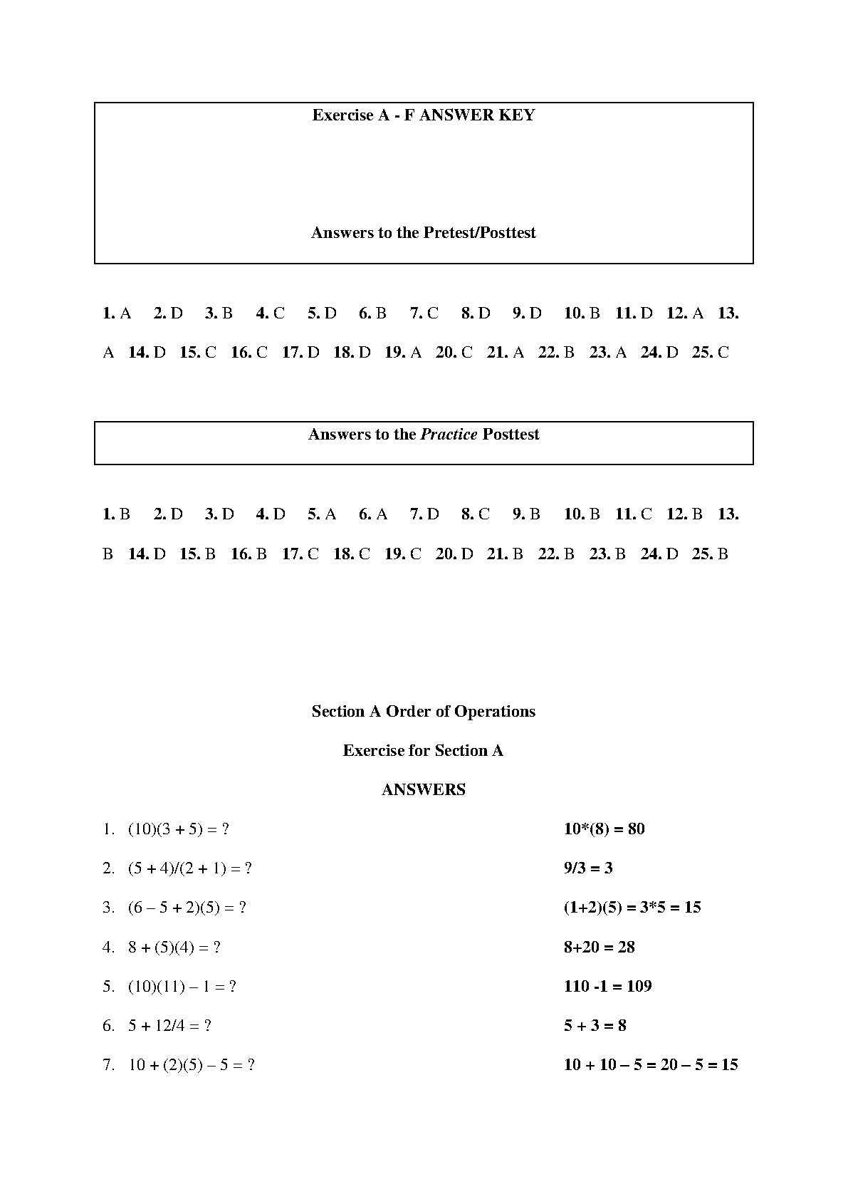 Ace your math exams with this detailed answer key for Exercise A - F. This resource provides solutions for both the pretest/posttest and practice posttest, covering order of operations. Perfect for students aiming to pass their exams on the first attempt and avoid resits. Ideal for 2024/2025 academic year.