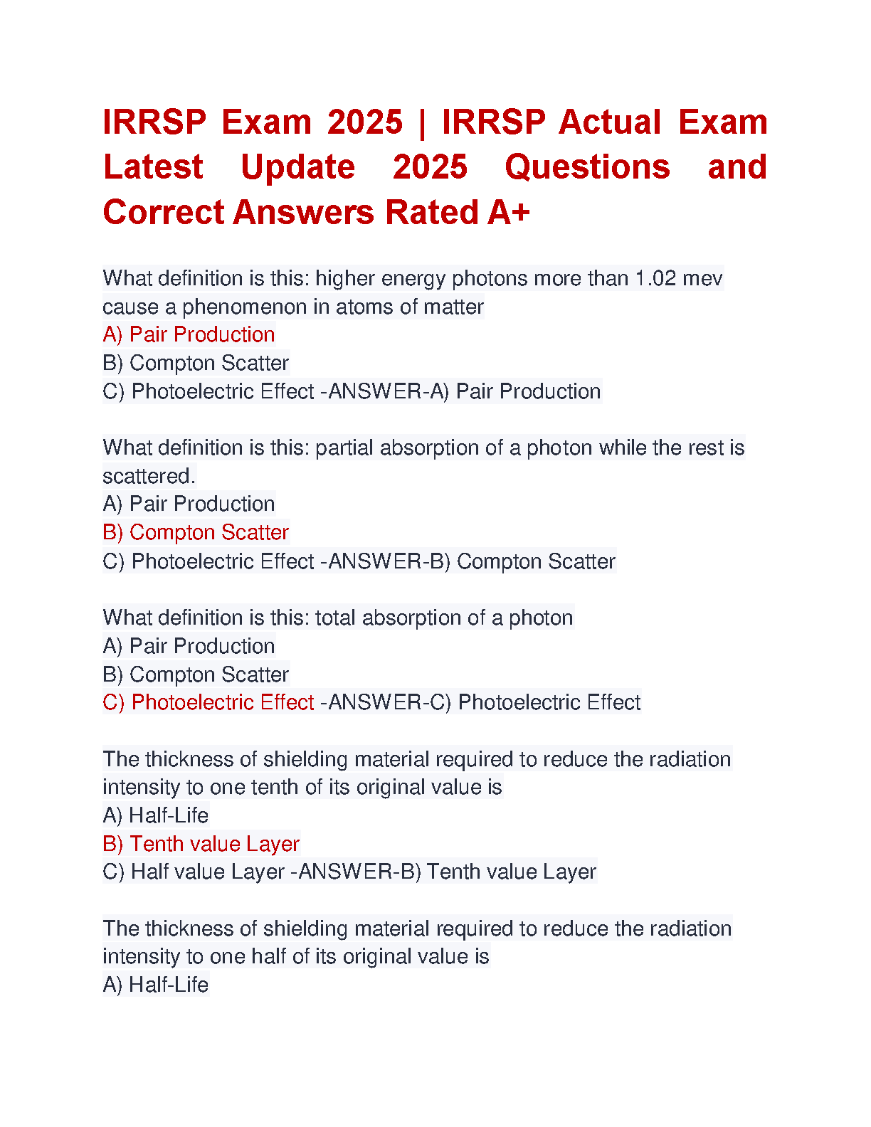 IRRSP Exam 2025: Latest Questions and Answers Rated A+ for Success