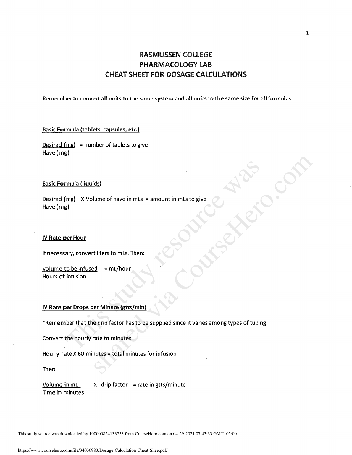 Pharmacology Rasmussen College Dosage Calculation Cheat Sheet 2023 LATEST VERSION. DOWNLOAD on www.Hackedexams.com INSTANTLY.