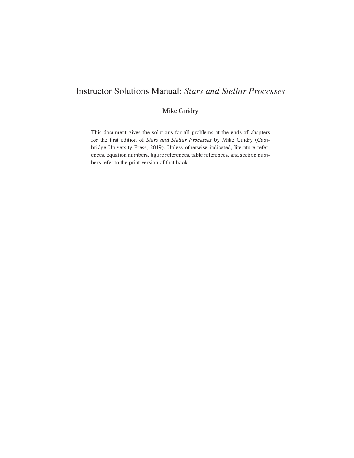 Stars and Stellar Processes Solutions Manual by Mike Guidry: Complete Solutions for Students
