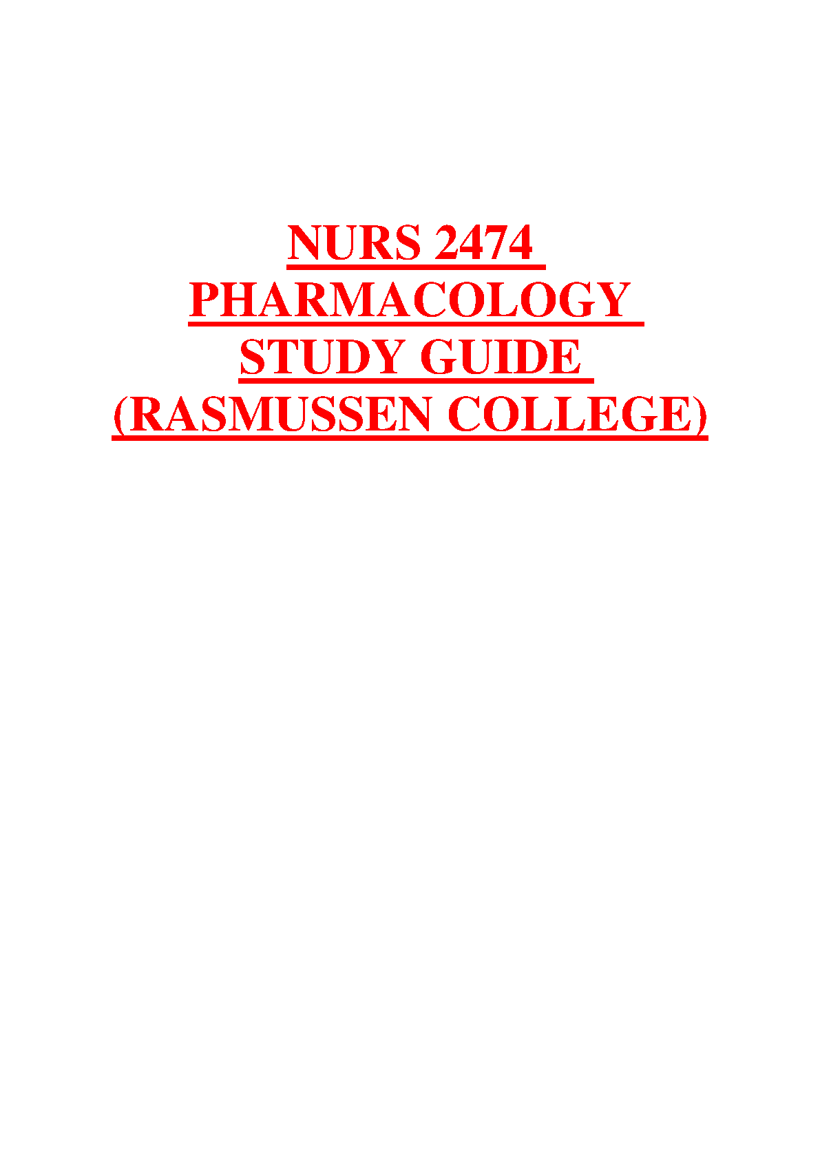 NUR 2474 Pharmacology Exam 1 Rasmussen. RATED A+