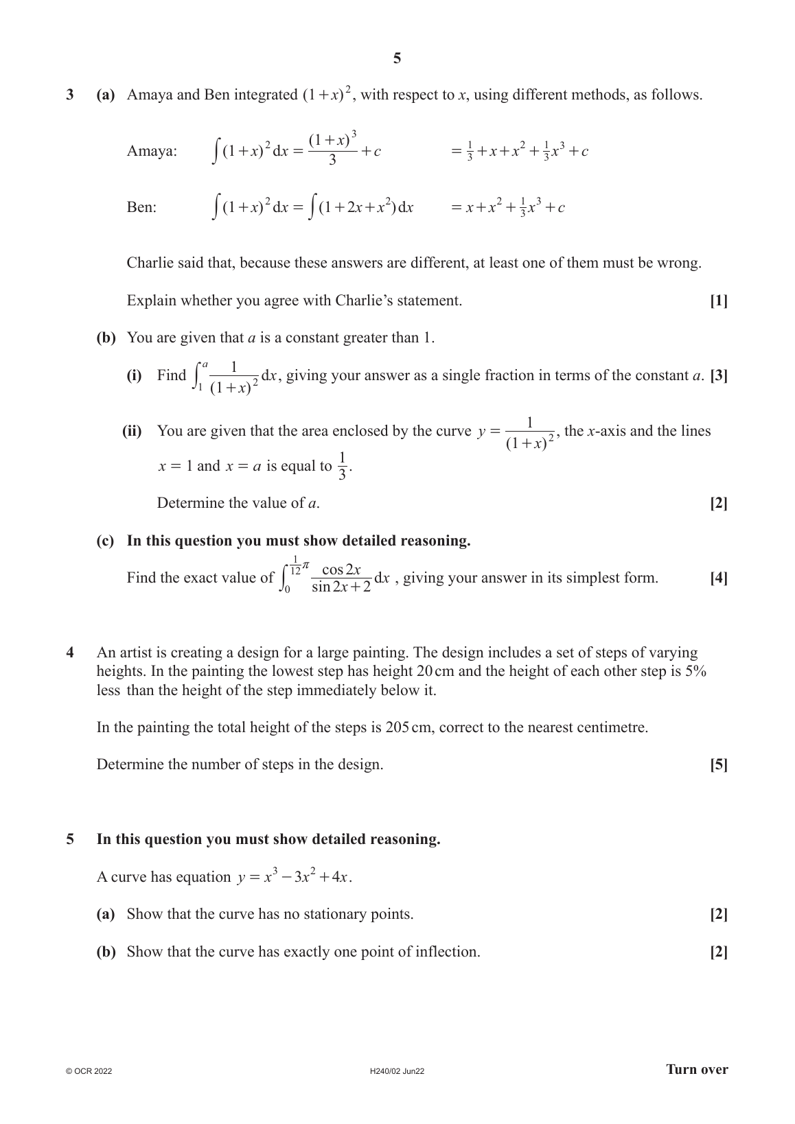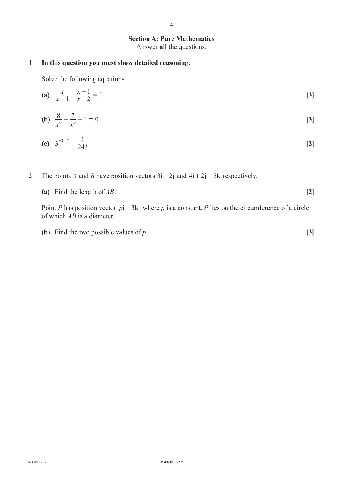 OCR A LEVEL MATHEMATICS A PAPER 2 JUNE 2022 QUESTION PAPER (H240/02: Pure Mathematics and Statistics)