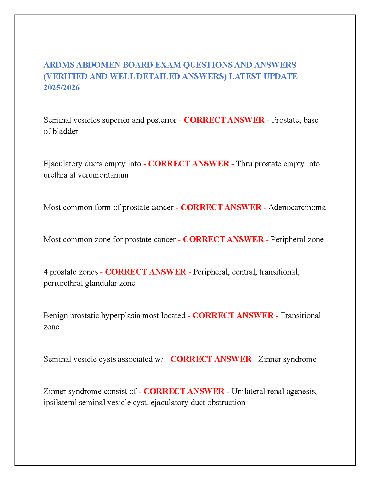 ARDMS Abdomen Board Exam Questions and Answers 2025/2026 Edition: Verified and Well-Detailed Answers for First-Attempt Success