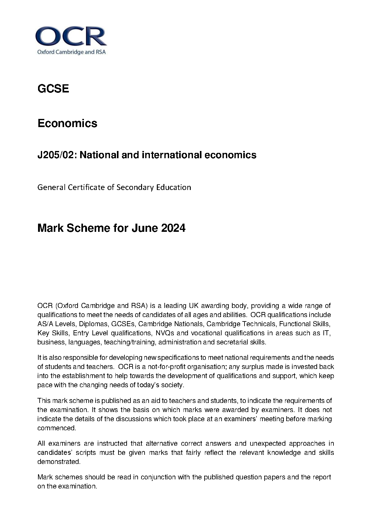 OCR GCSE Economics J205/02: National and International Economics Mark Scheme June 2024