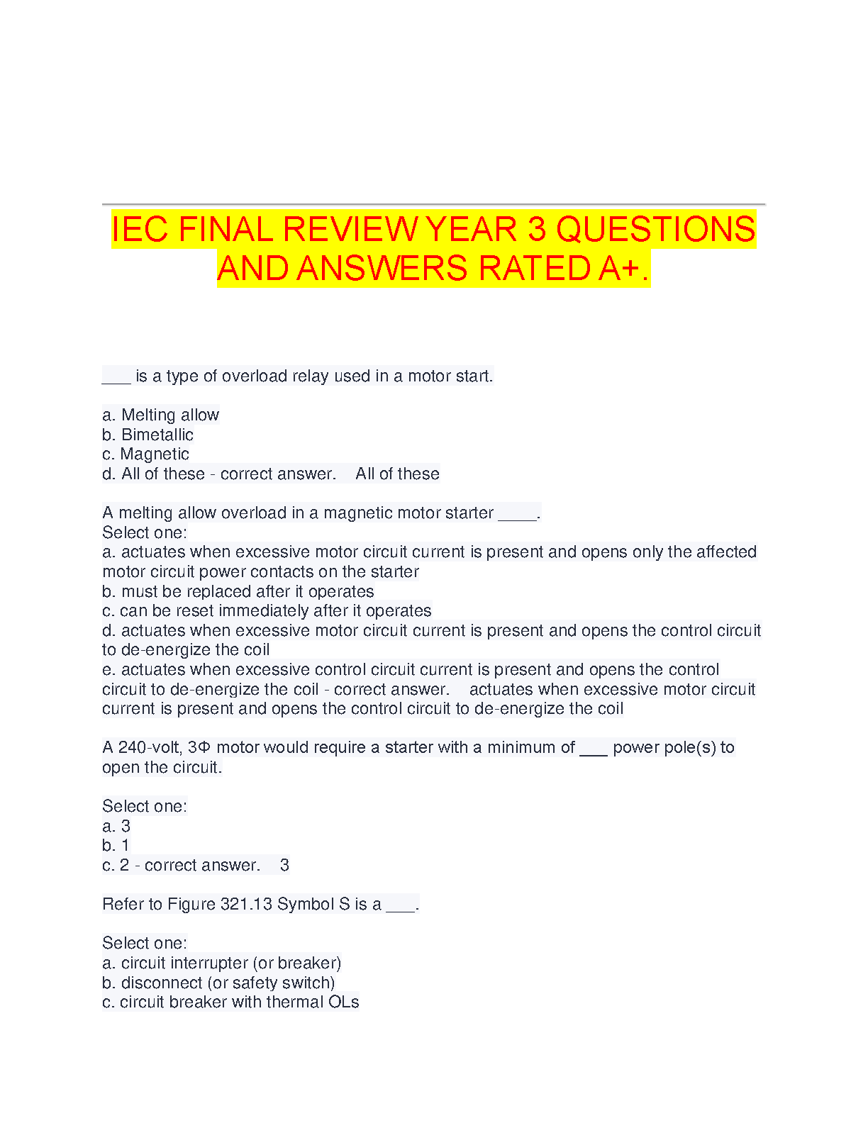 IEC Final Review Year 3 Questions and Answers Rated A+: A Comprehensive Guide for Exam Success