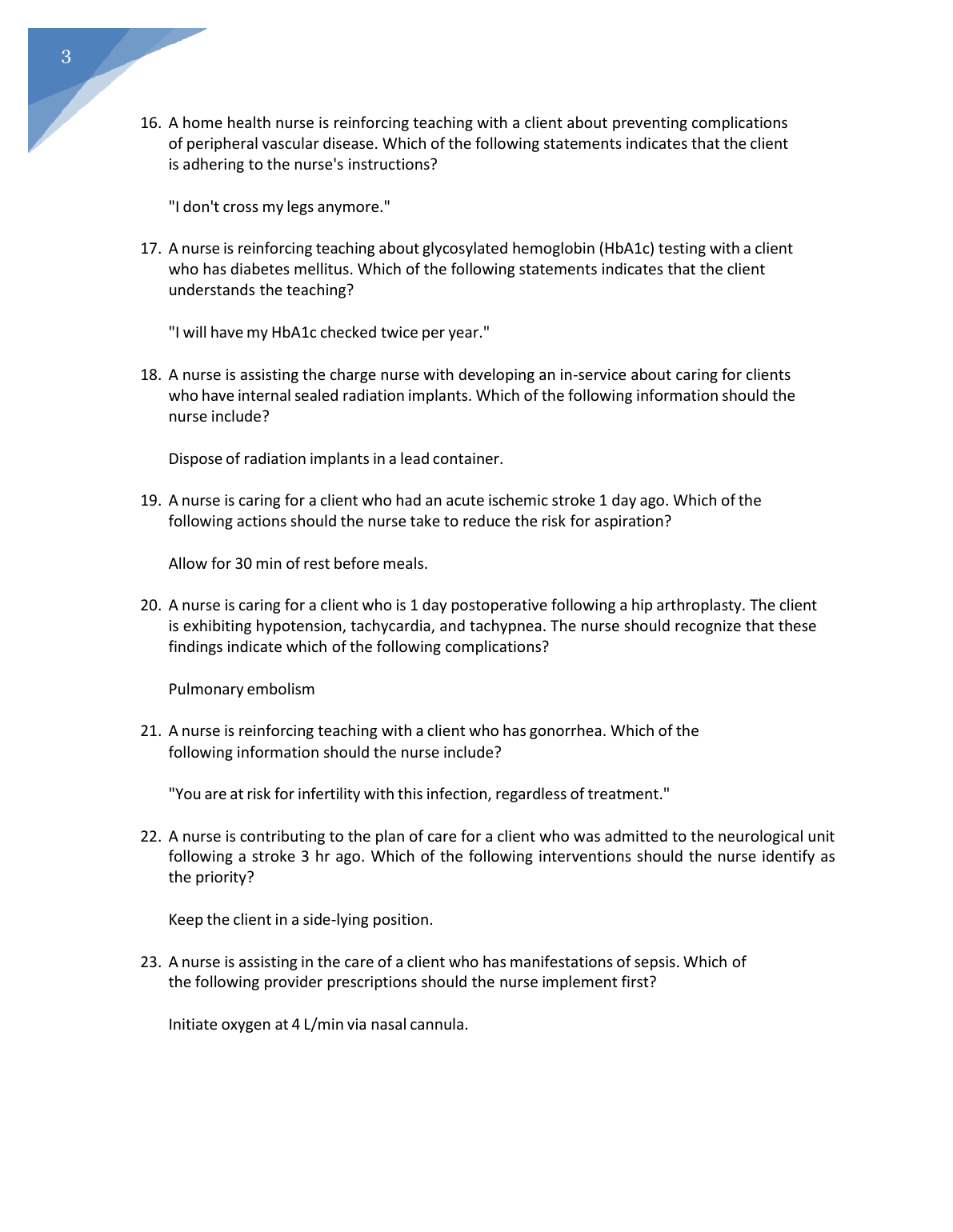ATI PN MED SURG; GU :MEDICAL-SURGICAL ADULT MEDICAL SURGICAL TEST BANK VERSION A, B AND C ANSWERED/ELABORATED 2023/2024