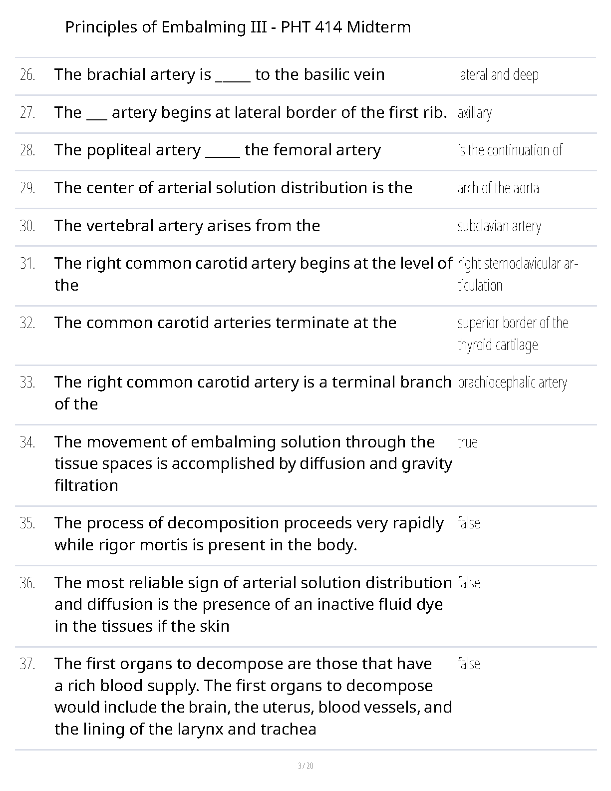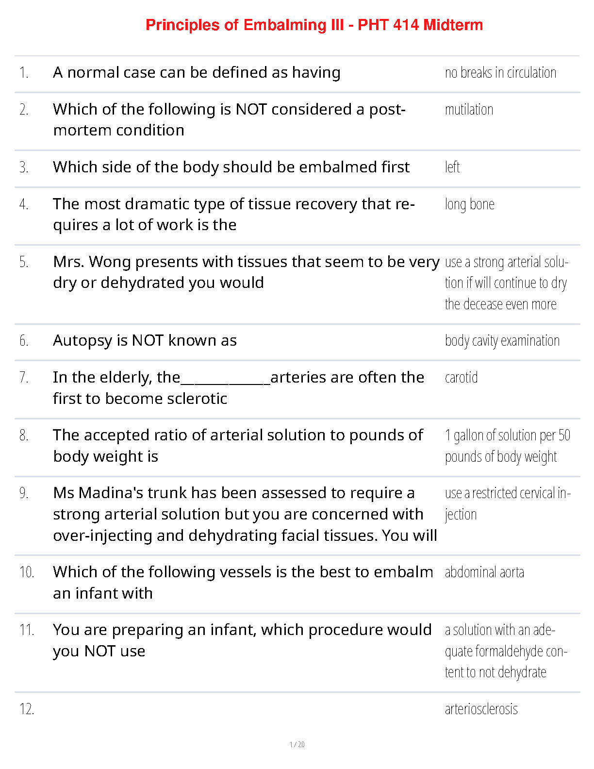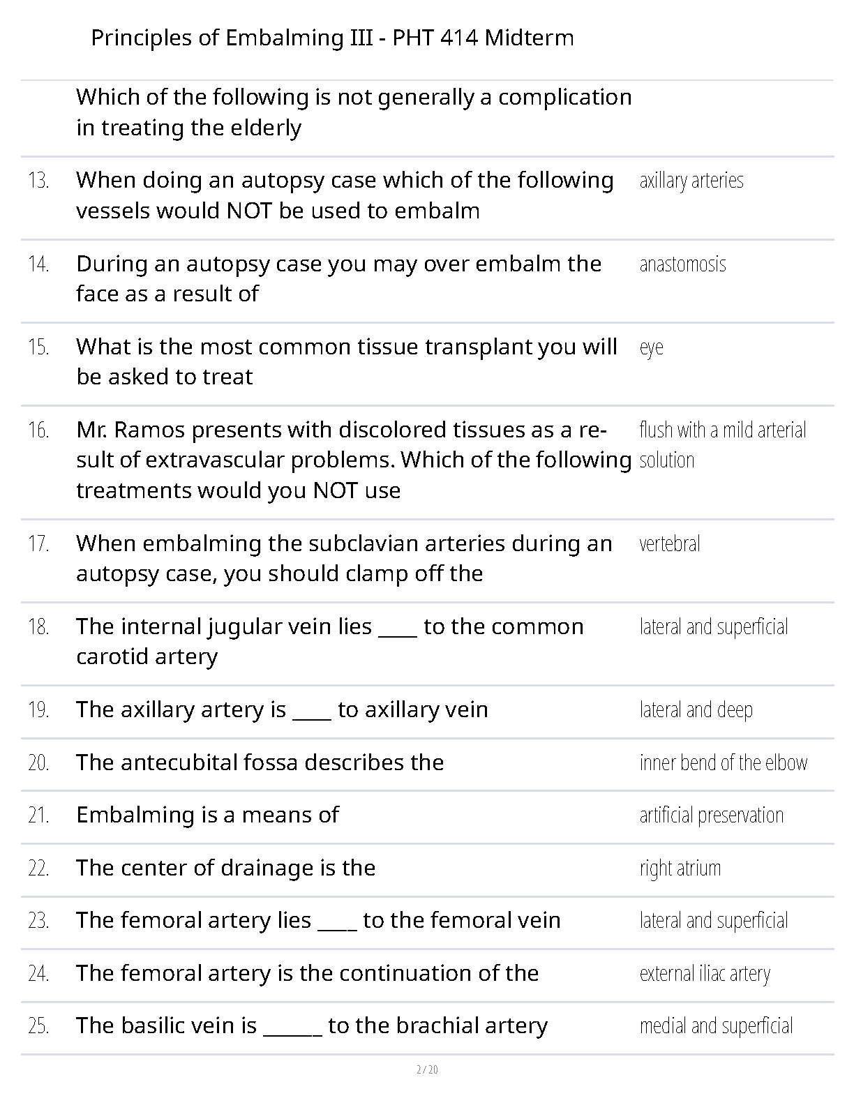 Principles of Embalming III - PHT 414 Midterm Exam Questions and Answers