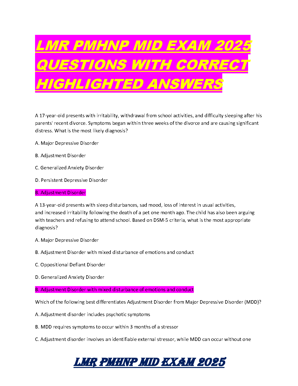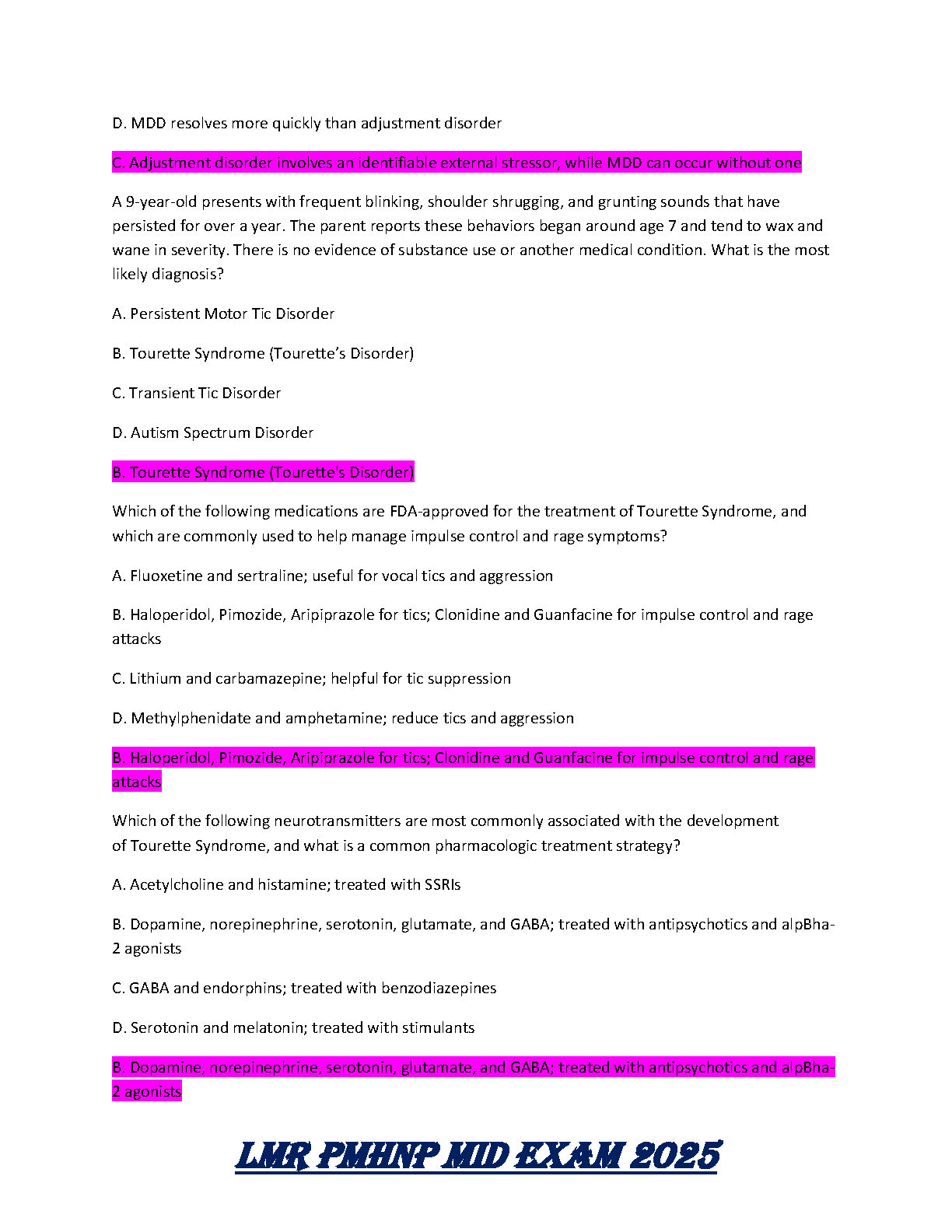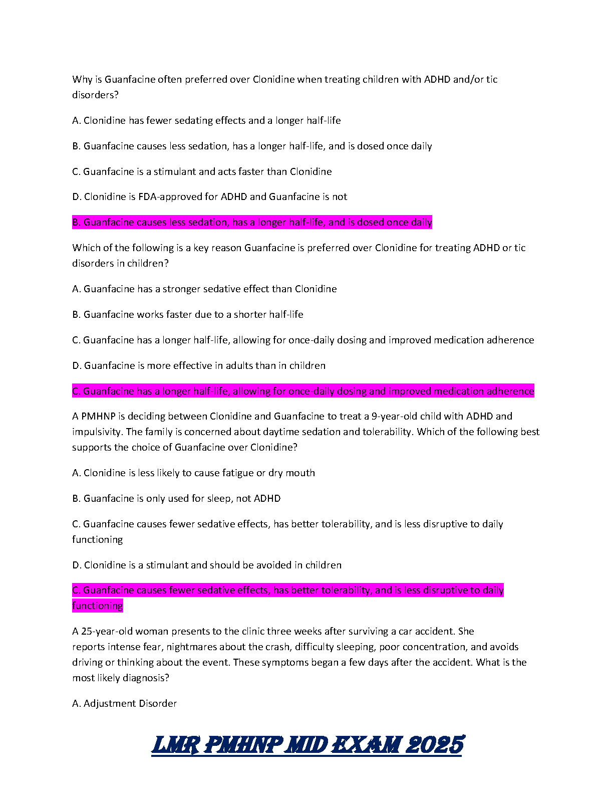 LMR PMHNP Midterm Exam 2025: Questions with Highlighted Answers