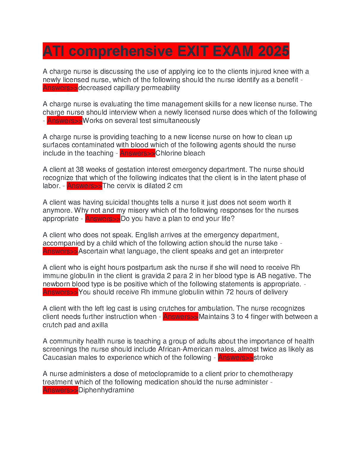 ATI Comprehensive Exit Exam 2025: Practice Questions and Answers