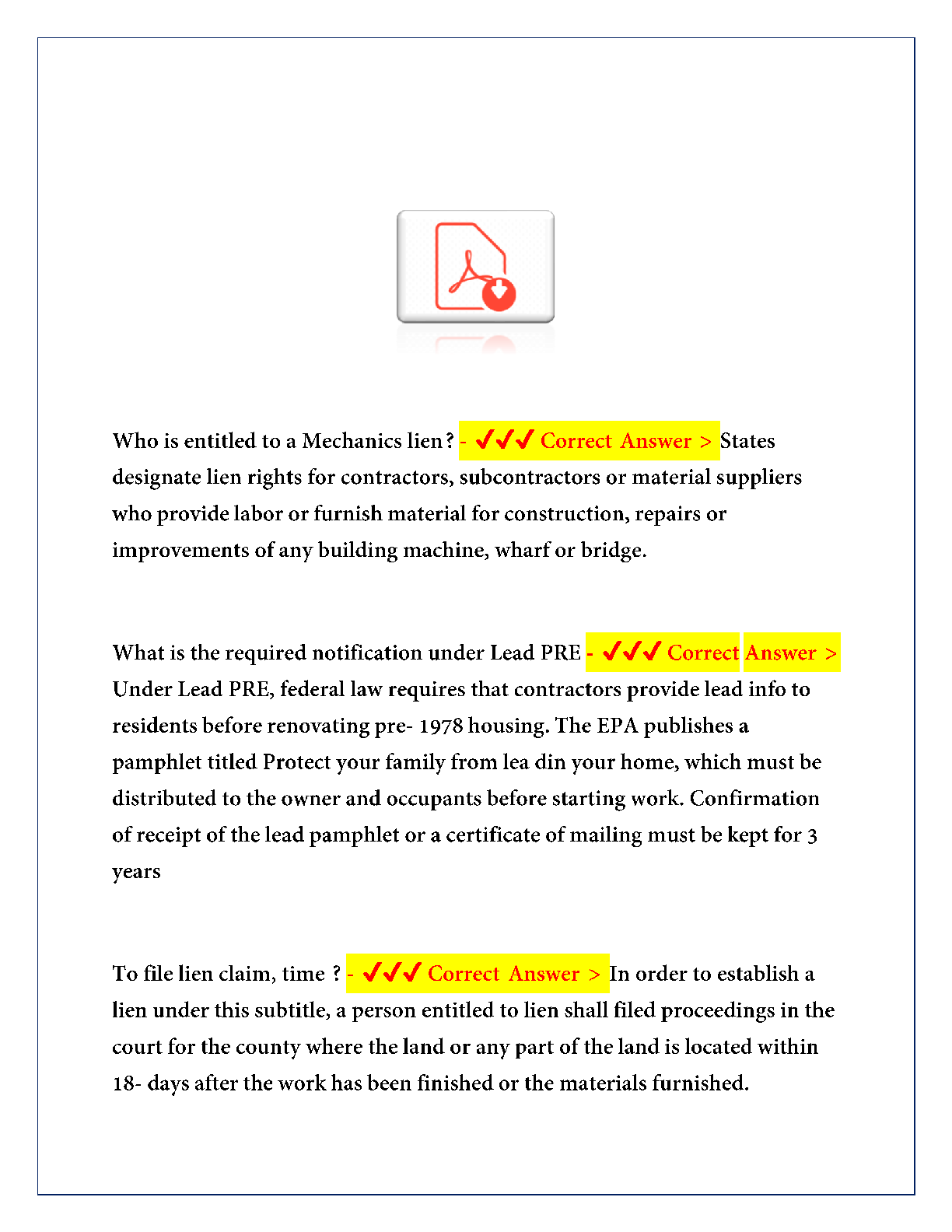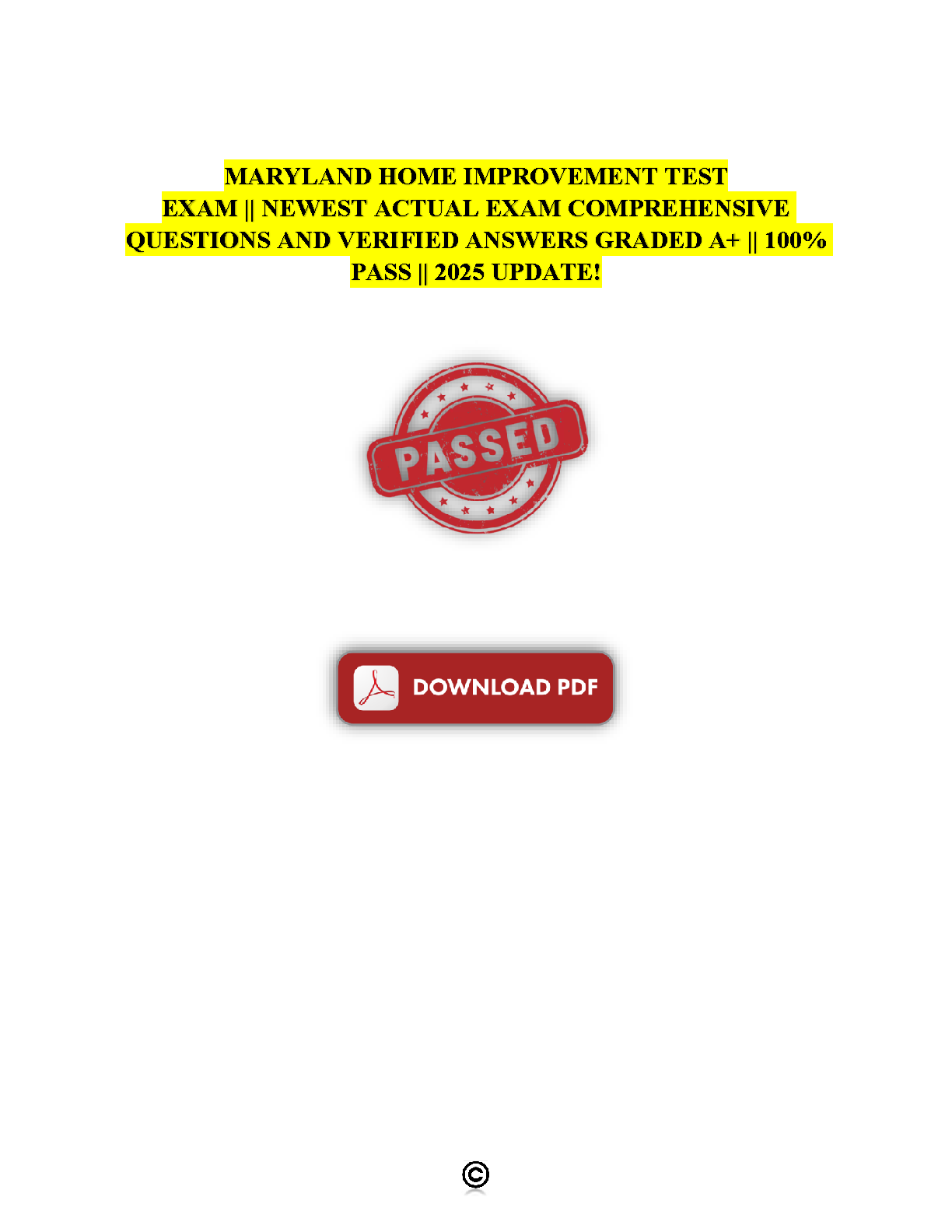 Ace the Maryland Home Improvement Test with our updated 2025 exam prep. This resource includes comprehensive questions and verified answers, all graded A+, ensuring a 100% pass rate on your first attempt. No more resits – conquer your exam with confidence!