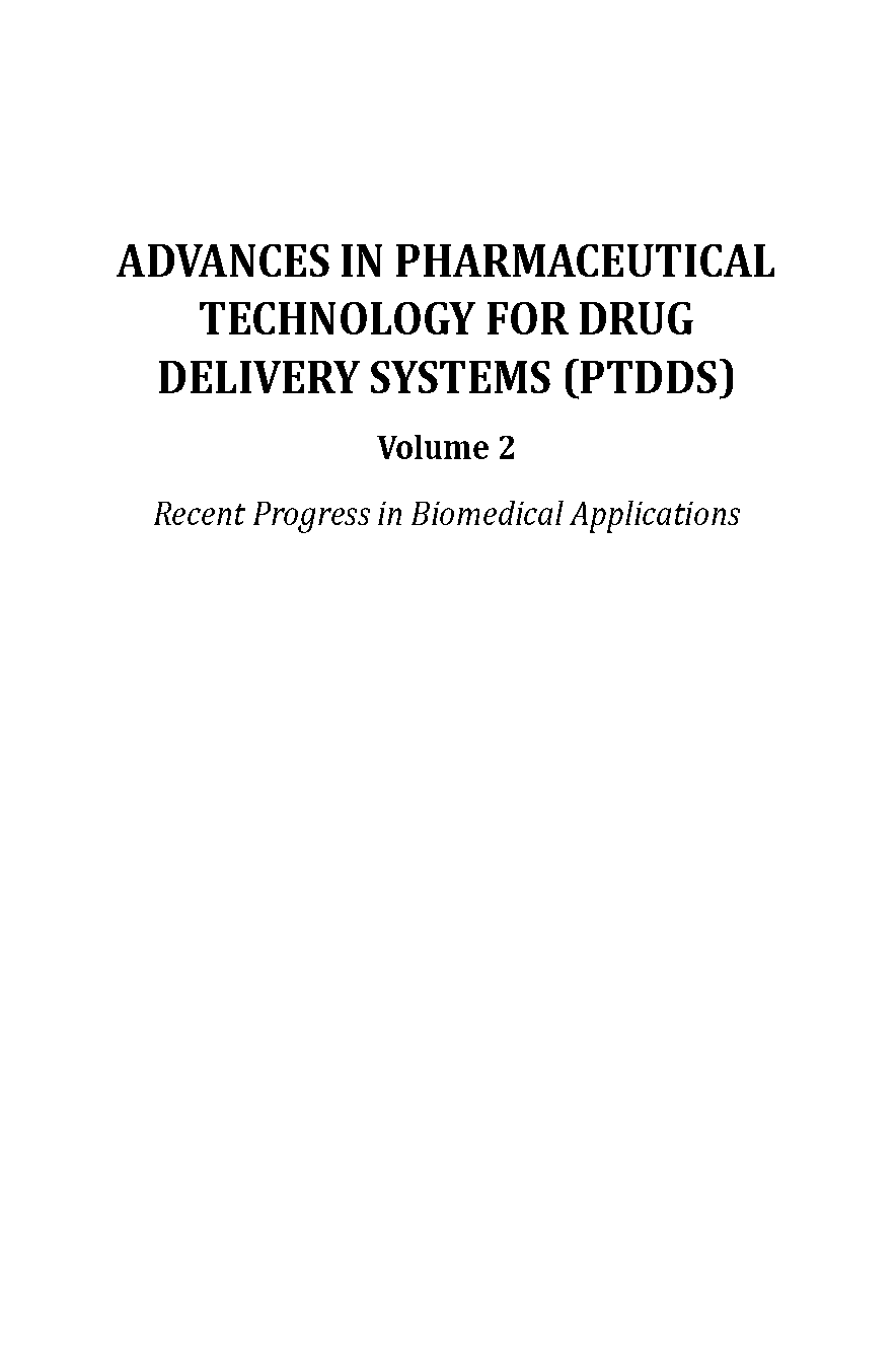 Advances in Pharmaceutical Technology for Drug Delivery Systems (PTDDS), Volume 2: Recent Progress in Biomedical Applications - Edited by Sougata Jana