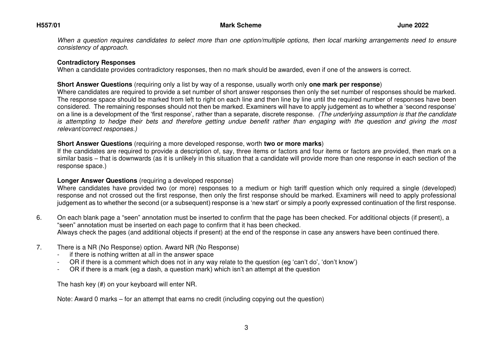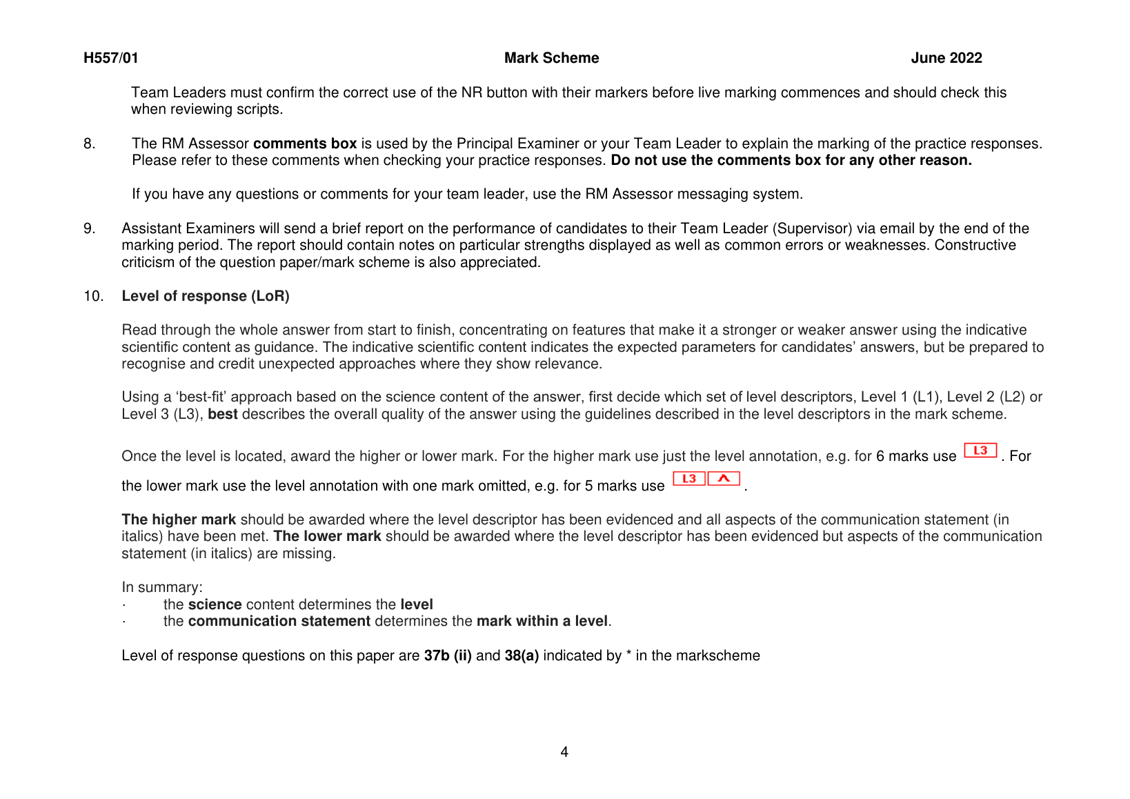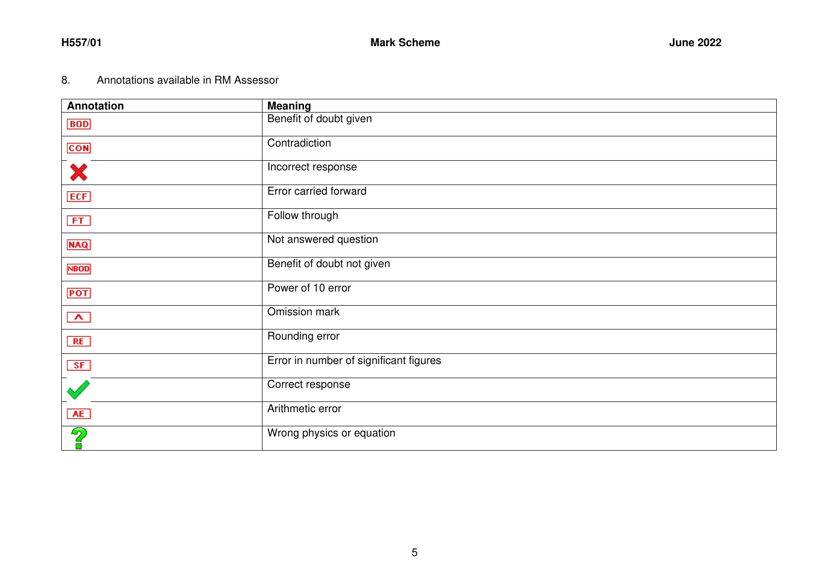 OCR A LEVEL PHYSICS B (Advancing Physics) PAPER 1 JUNE 2022 MARK SCHEME (H557/01: Fundamentals of Physics)