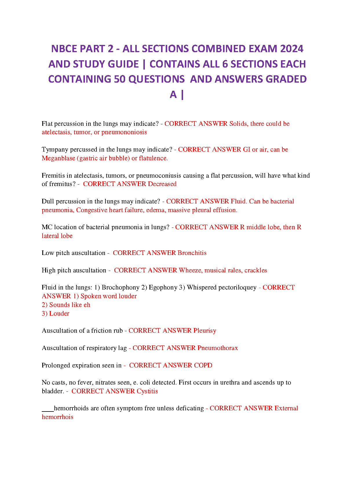 Ace your NBCE Part 2 exam with this comprehensive 2024/2025 study guide. This resource contains 50 graded questions and answers covering all 6 sections, designed to help you pass on your first attempt and avoid resits.