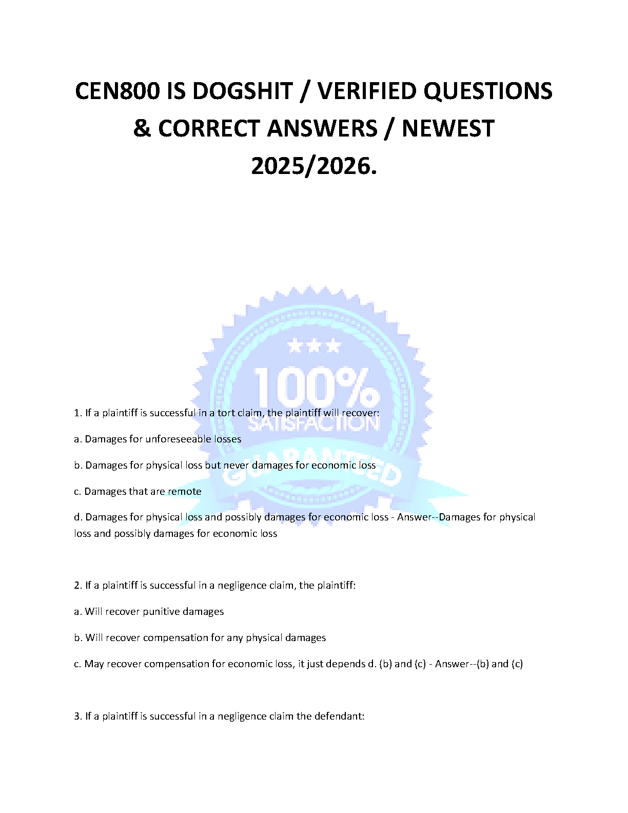 This resource contains verified questions and answers for CEN800, covering key concepts to help students succeed in their exams. Designed for the 2025/2026 academic year, these materials are intended to boost exam scores and avoid resits. Prepare efficiently and confidently!