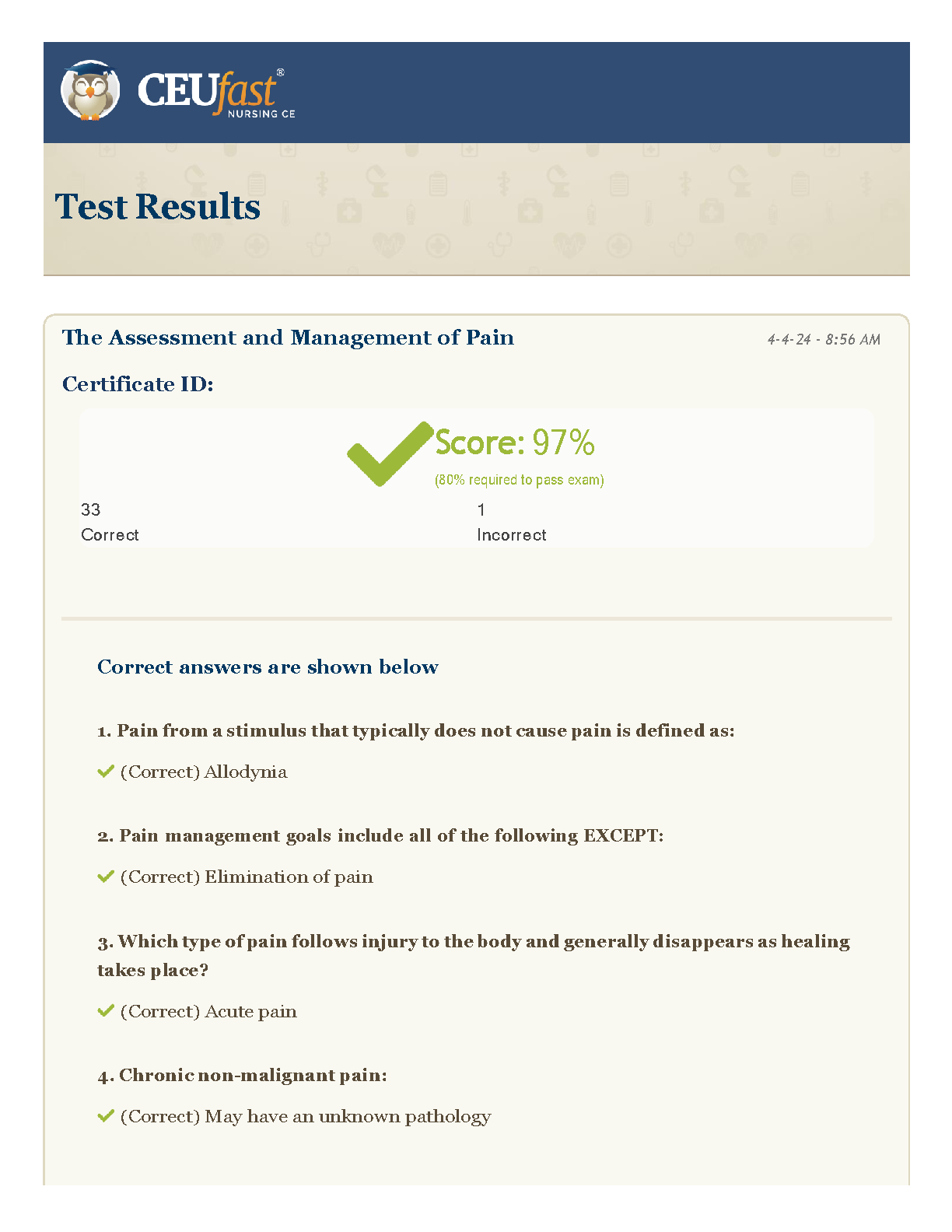 2024/2025 The Assessment and Management of Pain Exam Prep: Ace Your Exam on the First Attempt