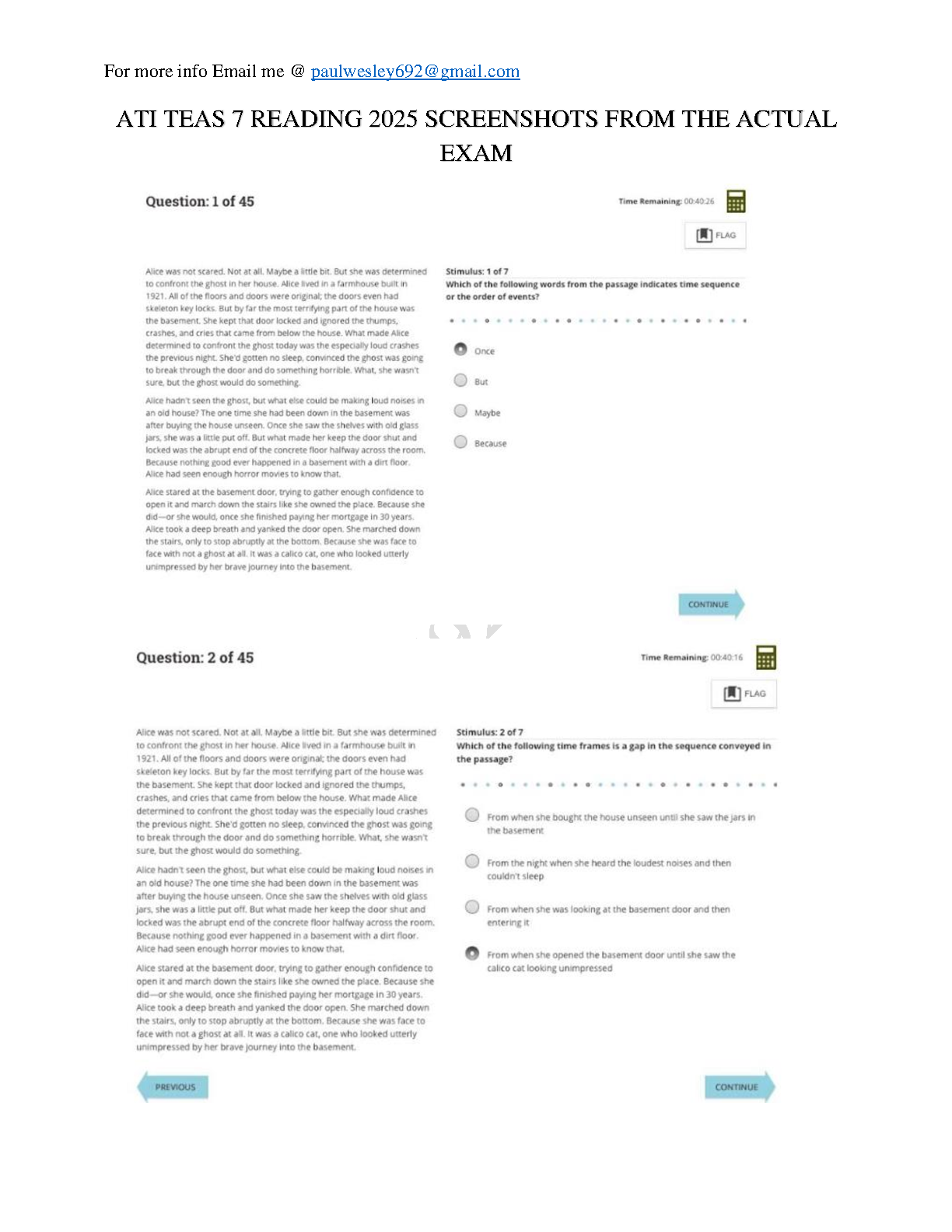 ATI TEAS 7 Reading 2025 Exam: Screenshots and Questions by Paul Wesley