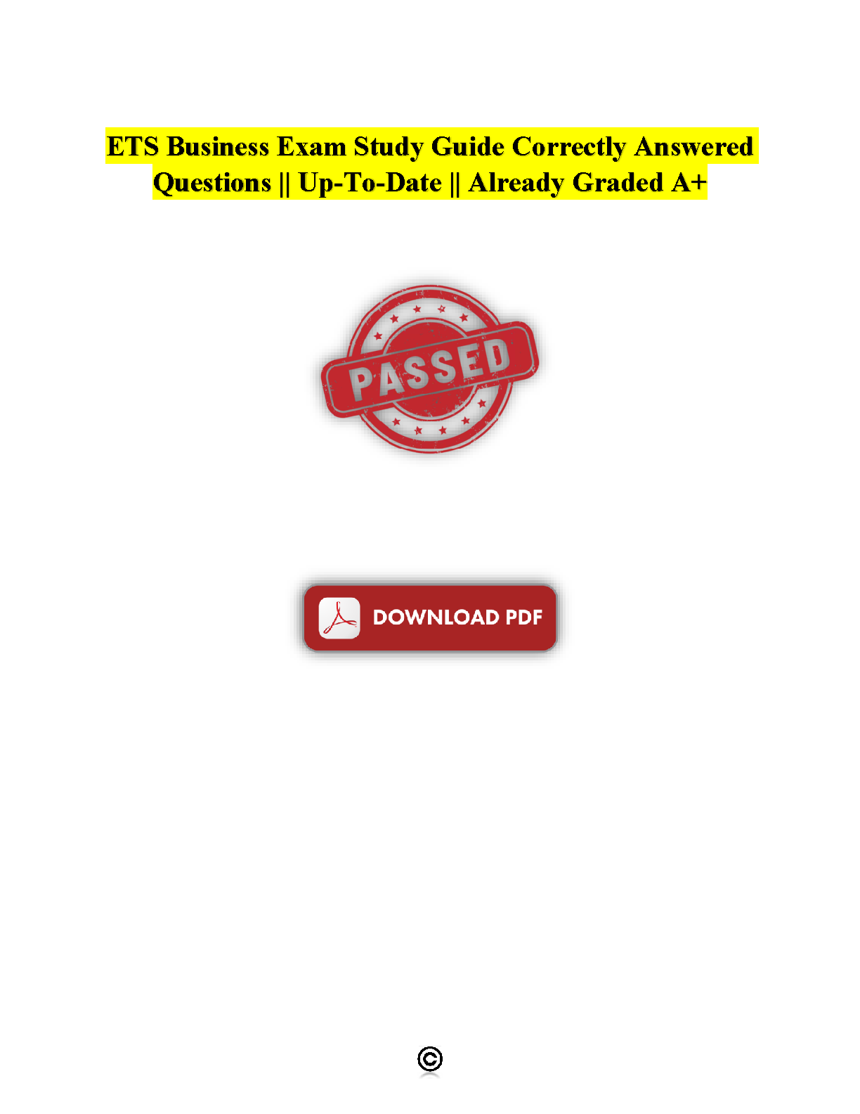 Pass your ETS Business Exam on the first try with this comprehensive study guide featuring up-to-date, correctly answered questions. This resource is designed to help students achieve an A+ and avoid exam resits. Download your copy today!