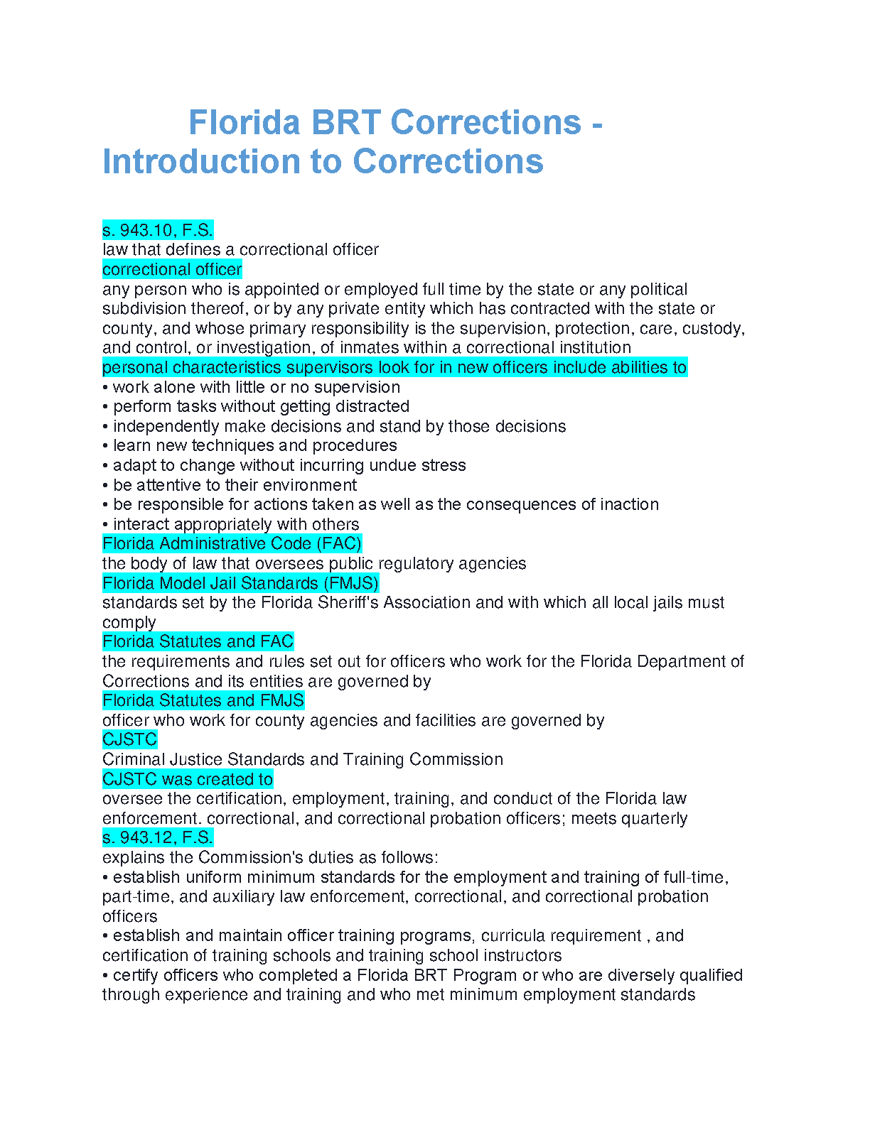 Florida BRT Corrections Introduction to Corrections: A 2024/2025 Guide for Passing Exams on the First Attempt