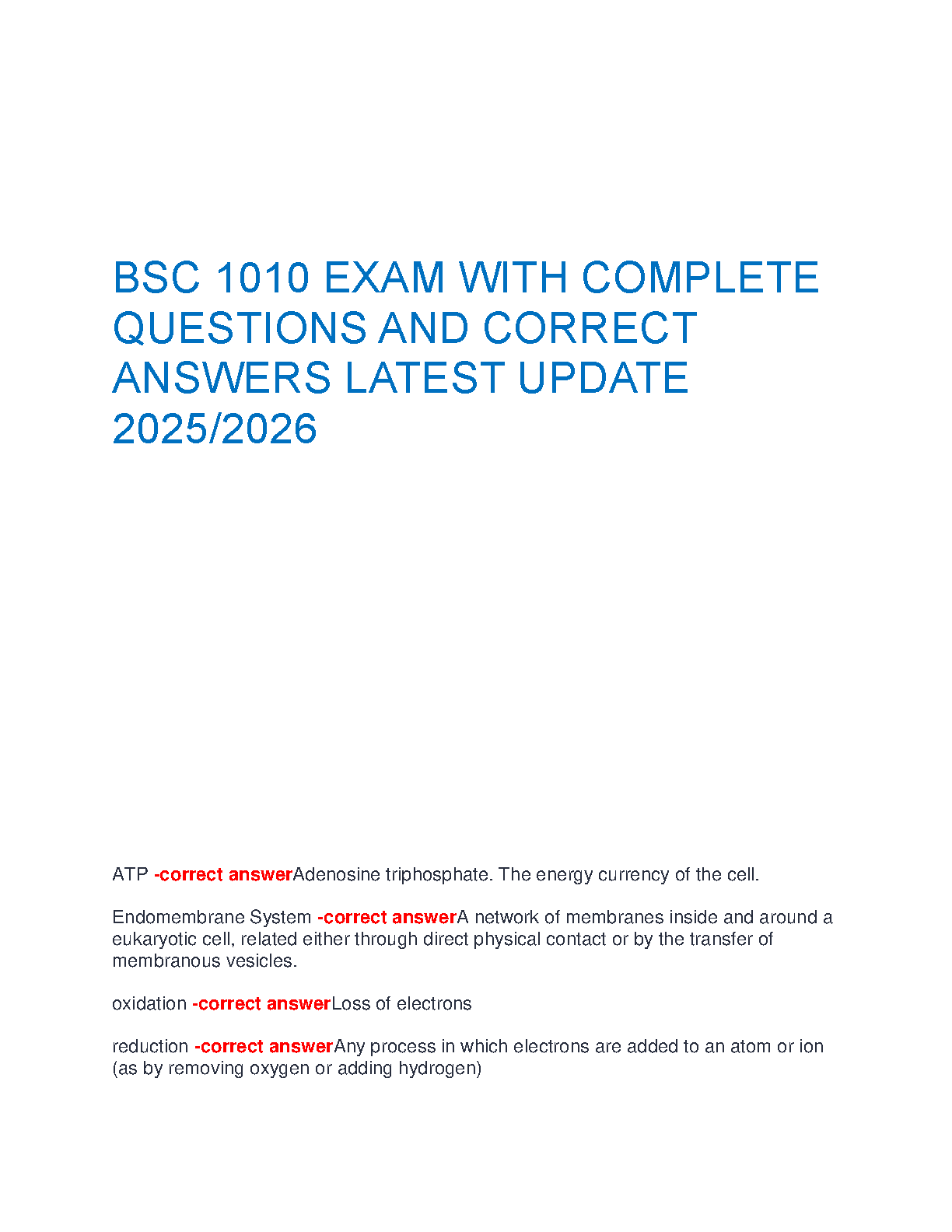 Pass your BSC 1010 exam with flying colors using this comprehensive guide, featuring complete questions and answers, updated for the 2025/2026 academic year. This resource is designed to help students master the material and achieve exam success, ensuring they pass on their first try. Get ahead of the curve and avoid resits!