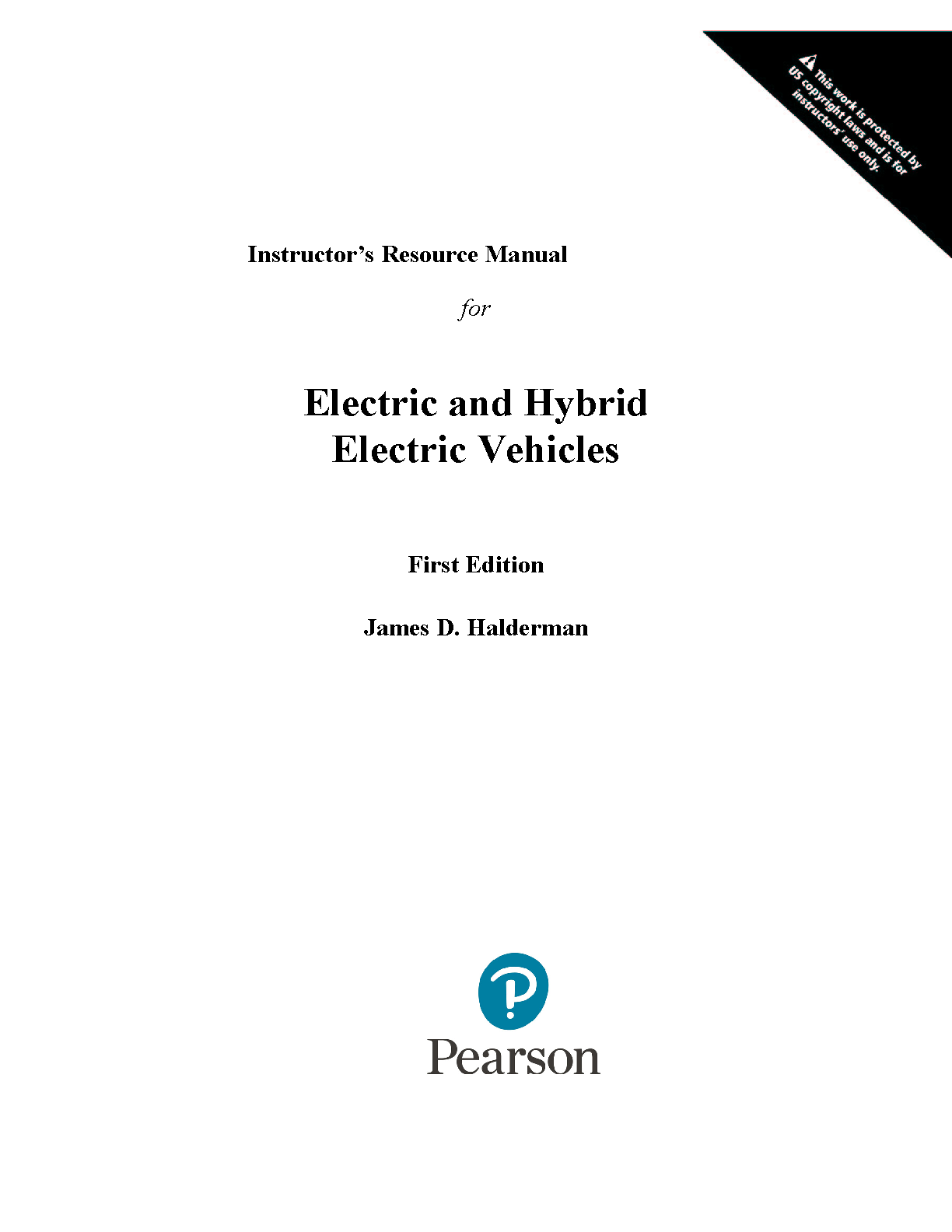 Access the complete Instructor's Resource Manual for James D. Halderman's Electric and Hybrid Electric Vehicles, First Edition. This resource is designed to help instructors effectively teach the course material. It's perfect for preparing engaging lessons and ensuring students grasp the concepts of electric and hybrid vehicles efficiently. This manual will make your teaching experience smoother and more effective.