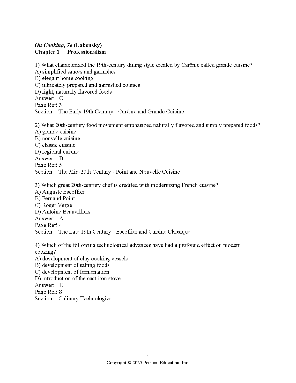 Ace your culinary fundamentals exams with this comprehensive test bank for On Cooking: A Textbook of Culinary Fundamentals, Seventh Edition, by Sarah R. Labensky, Alan M. Hause, and Priscilla A. Martel. This resource provides in-depth practice questions and answers, ensuring you're fully prepared for exam success on your first attempt.