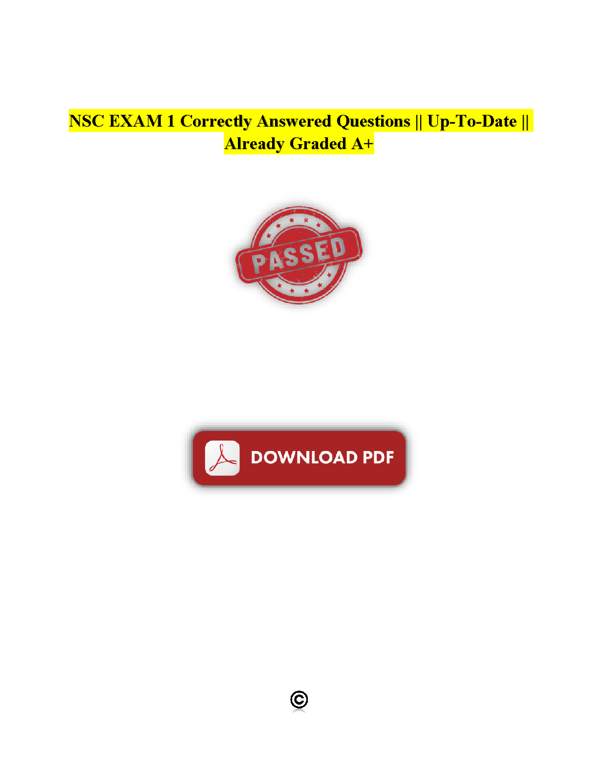 Ace your NSC Exam 1 on the first try with this comprehensive collection of correctly answered questions. These up-to-date questions are already graded A+ and designed to help you avoid resits. Download the PDF now and boost your exam confidence!