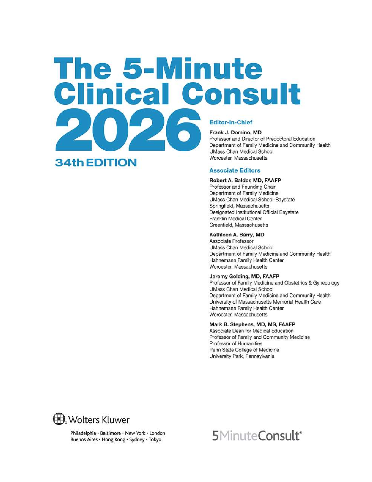 The 5-Minute Clinical Consult 2026, 34th Edition: By Frank J. Domino, Robert A. Baldor, Kathleen A. Barry, Jeremy Golding, and Mark B. Stephens