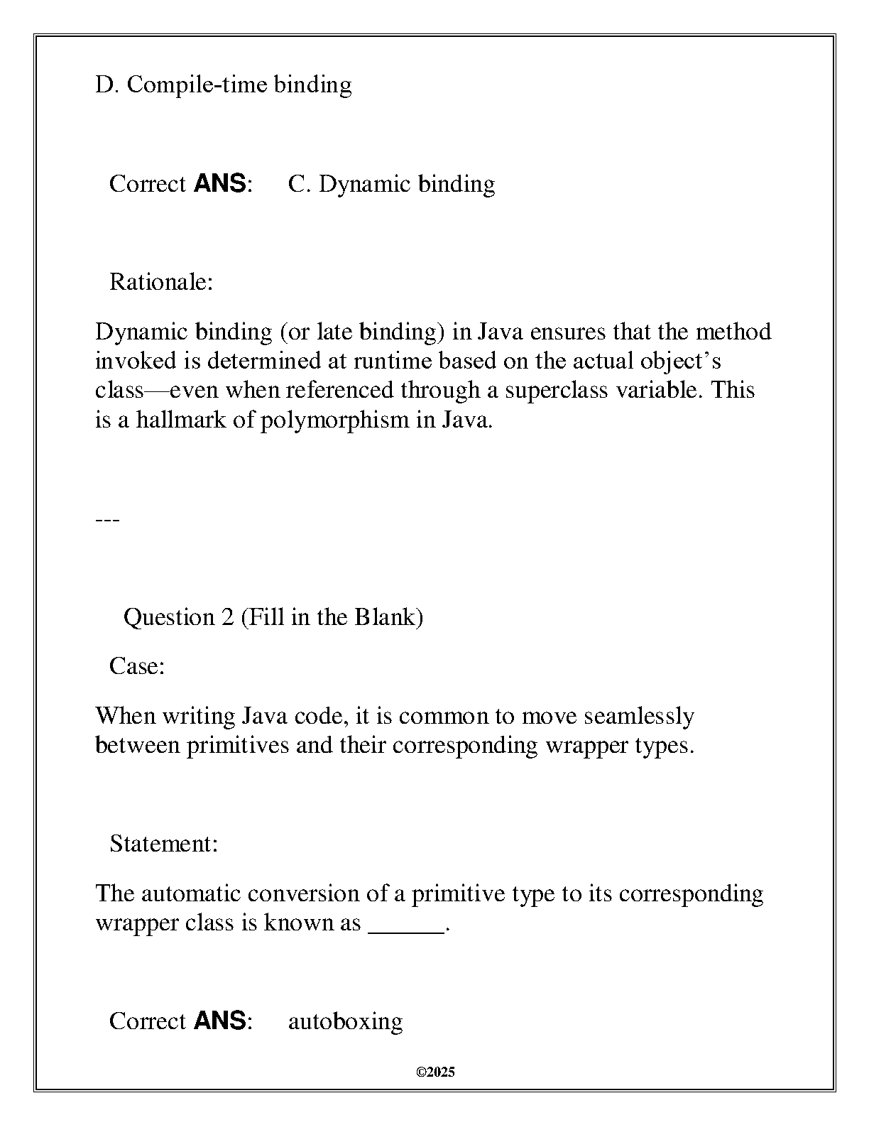 WGU Java Fundamentals - ITSW 3172 D286 Complete Final Assessment 2025: Questions and Answers