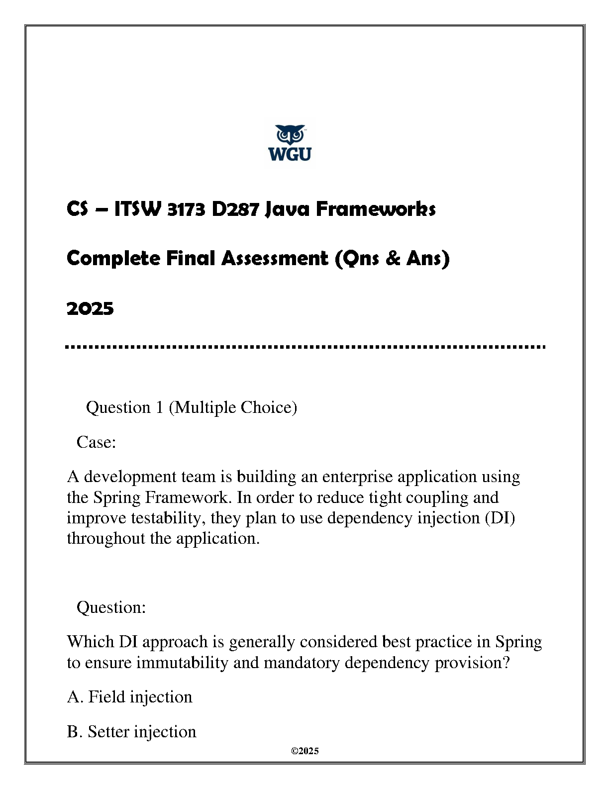 WGU CS ITSW 3173 D287 Java Frameworks Complete Final Assessment 2025: Ace Your Exam on the First Try!