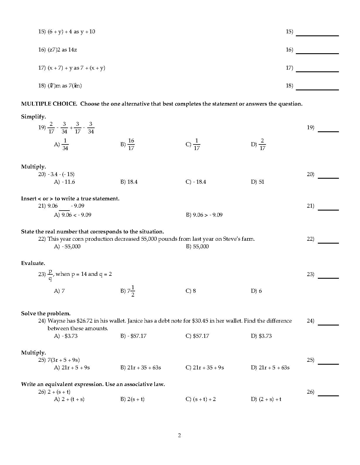 This resource provides practice problems focusing on algebraic expressions. The questions cover topics such as simplifying expressions, applying the commutative and associative laws, and identifying equivalent expressions. Ideal for students seeking exam preparation and aiming to pass on their first attempt.