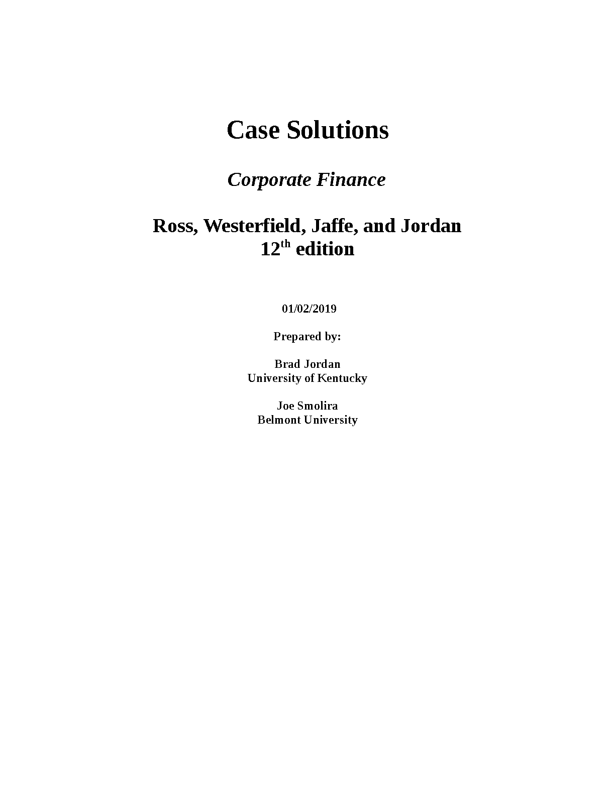 Corporate Finance Twelfth Edition Case Solutions by Stephen A. Ross, Randolph W. Westerfield, Bradford D. Jaffe, and Jeffrey F. Jordan