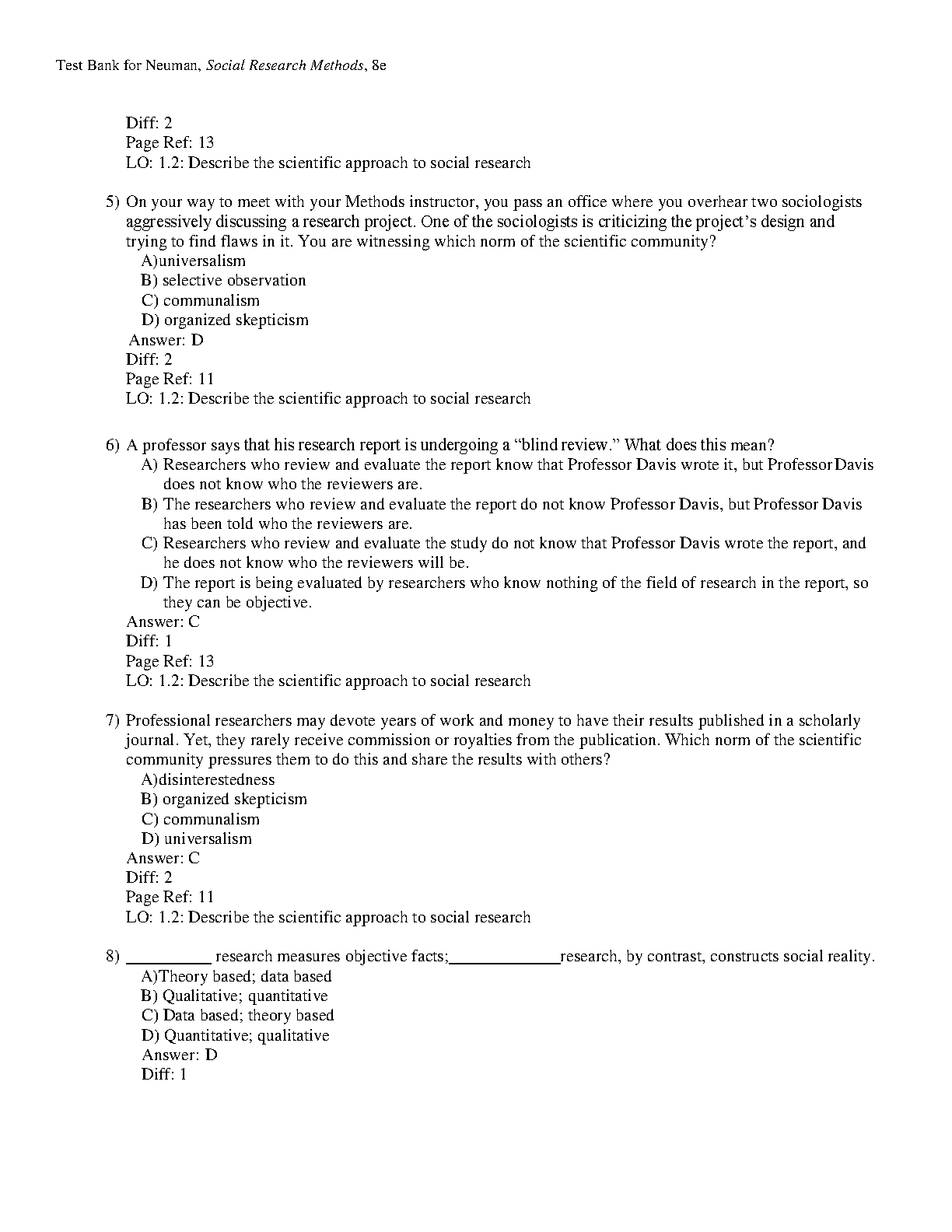 Social Research Methods: Qualitative and Quantitative Approaches, 8th Edition Test Bank - Lawrence Neuman