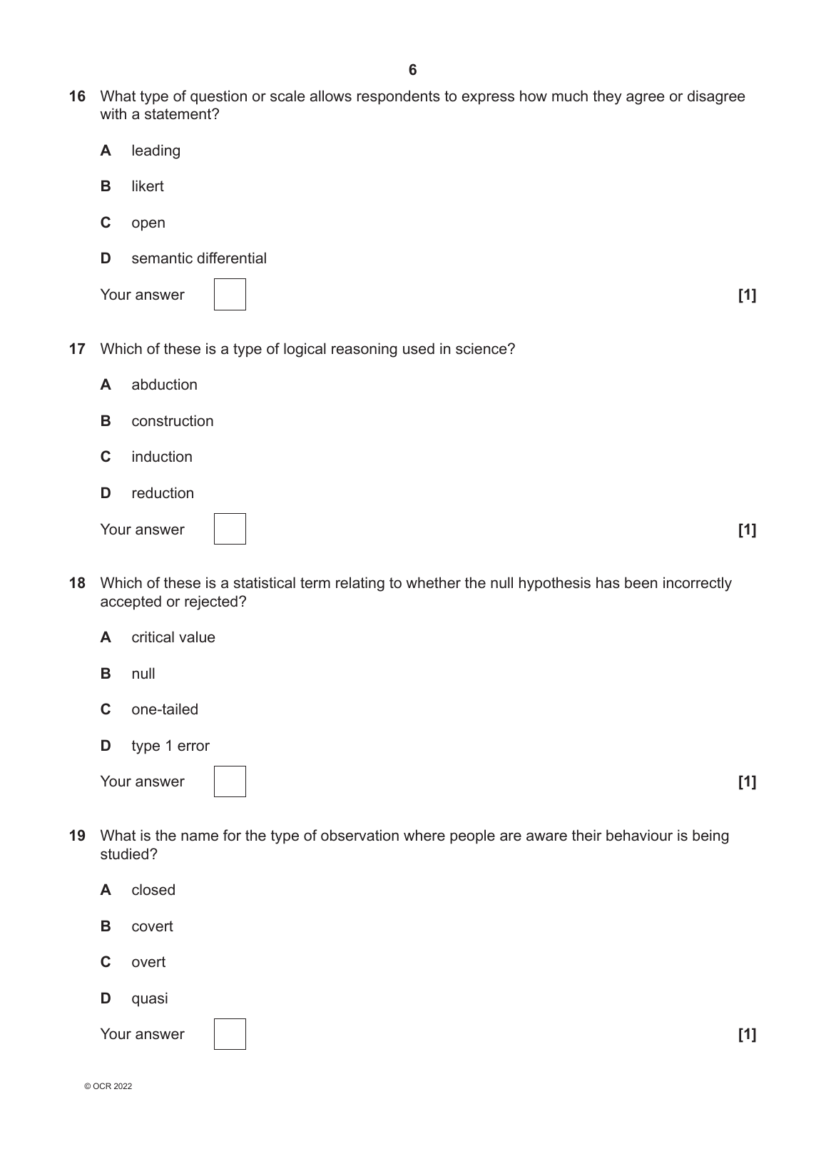 OCR A LEVEL PSYCHOLOGY PAPER 1 MAY 2022 QUESTION PAPER (H567/01: Research methods)