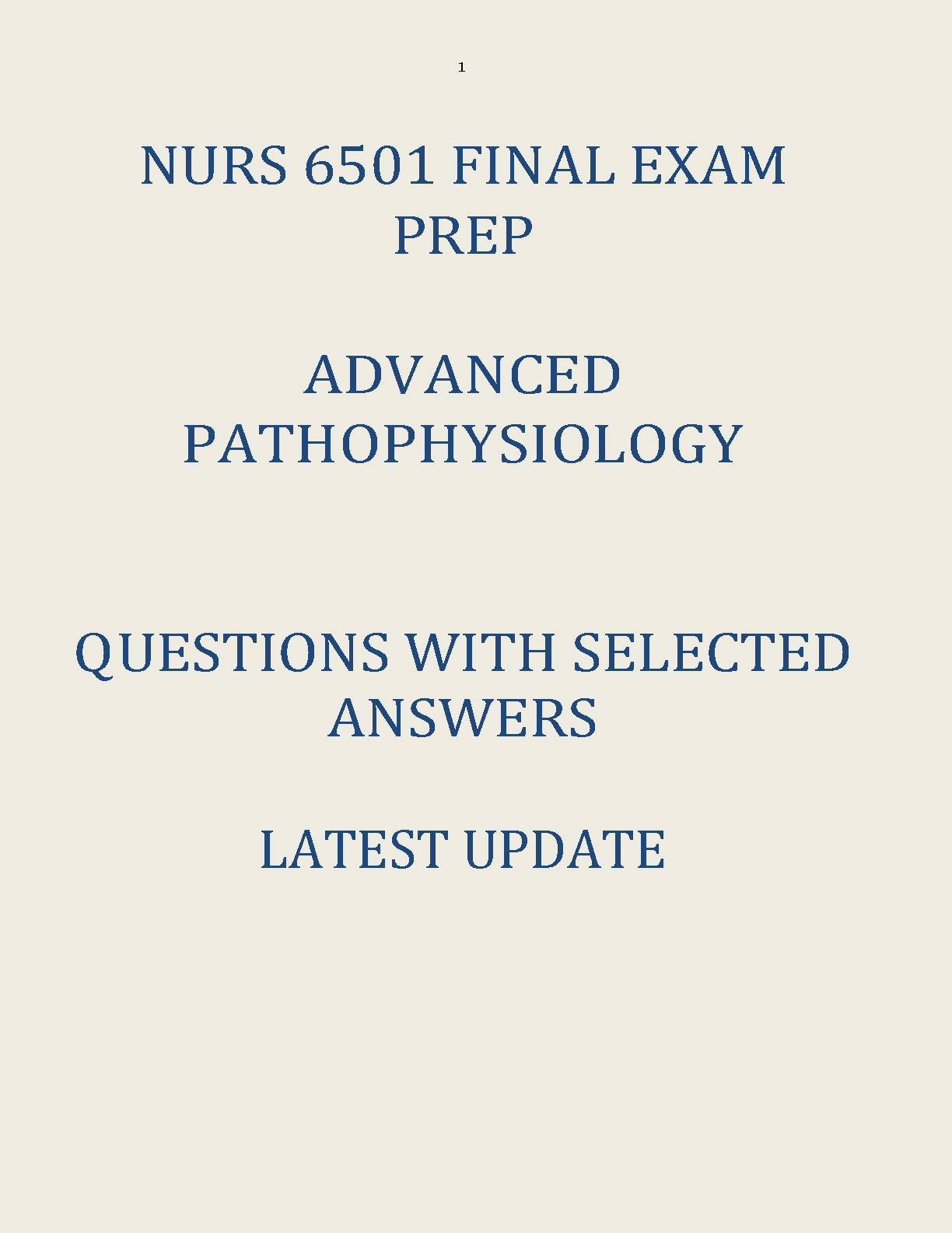 Ace your NURS 6501 final exam with this comprehensive study guide featuring questions and selected answers on advanced pathophysiology. This updated resource is designed to help students succeed on their first attempt, ensuring exam readiness and avoiding resits. Prepare effectively for the 2024/2025 academic year.