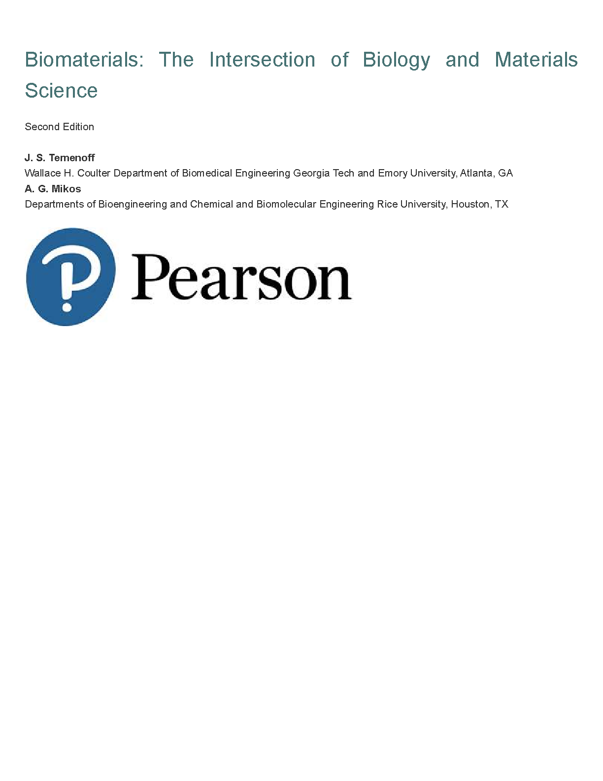 Biomaterials: The Intersection of Biology and Materials Science, Second Edition - by Nicholas A. Peppas, Antonios G. Mikos