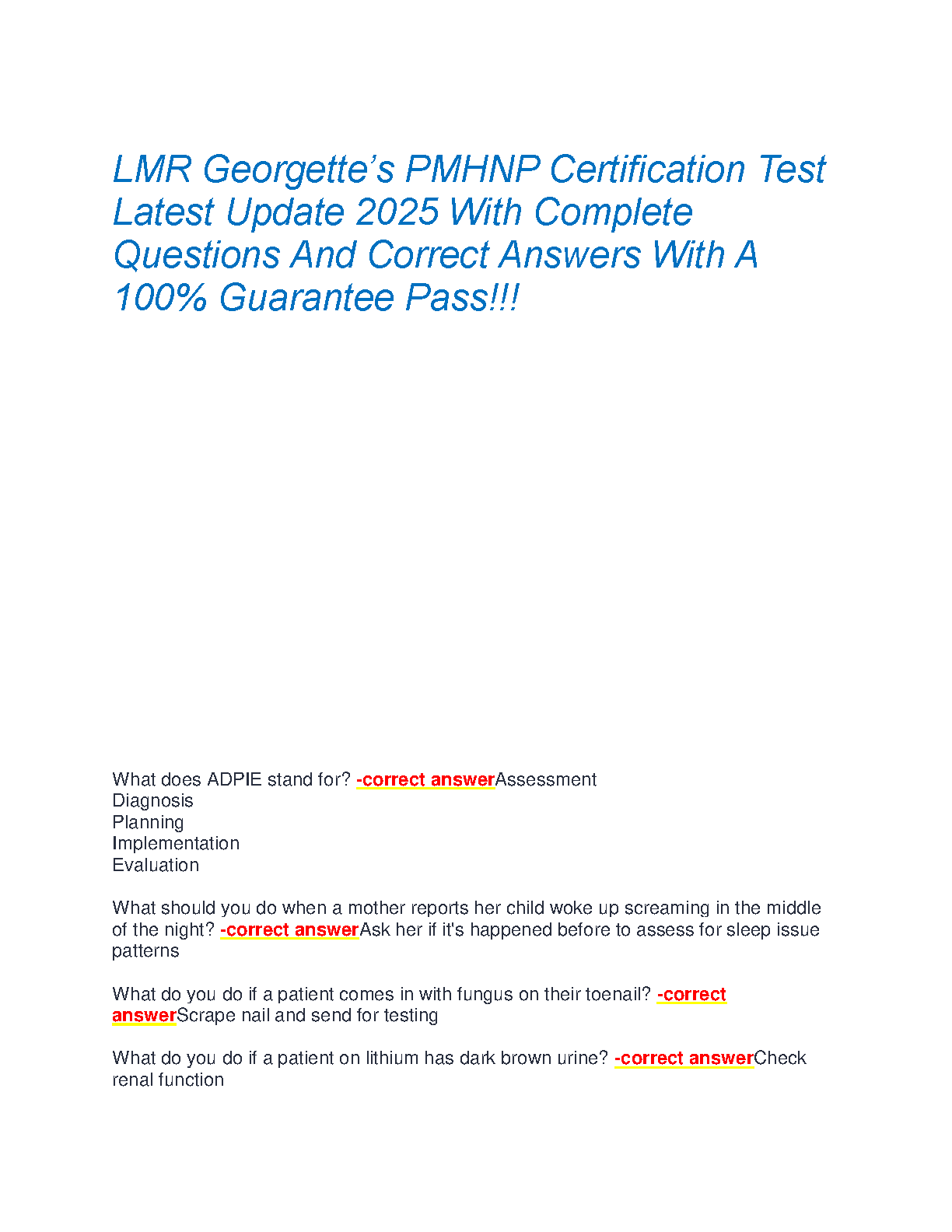 LMR Georgette's PMHNP Certification Test Bank 2025 Edition: Ace Your Exam with Complete Questions and Answers