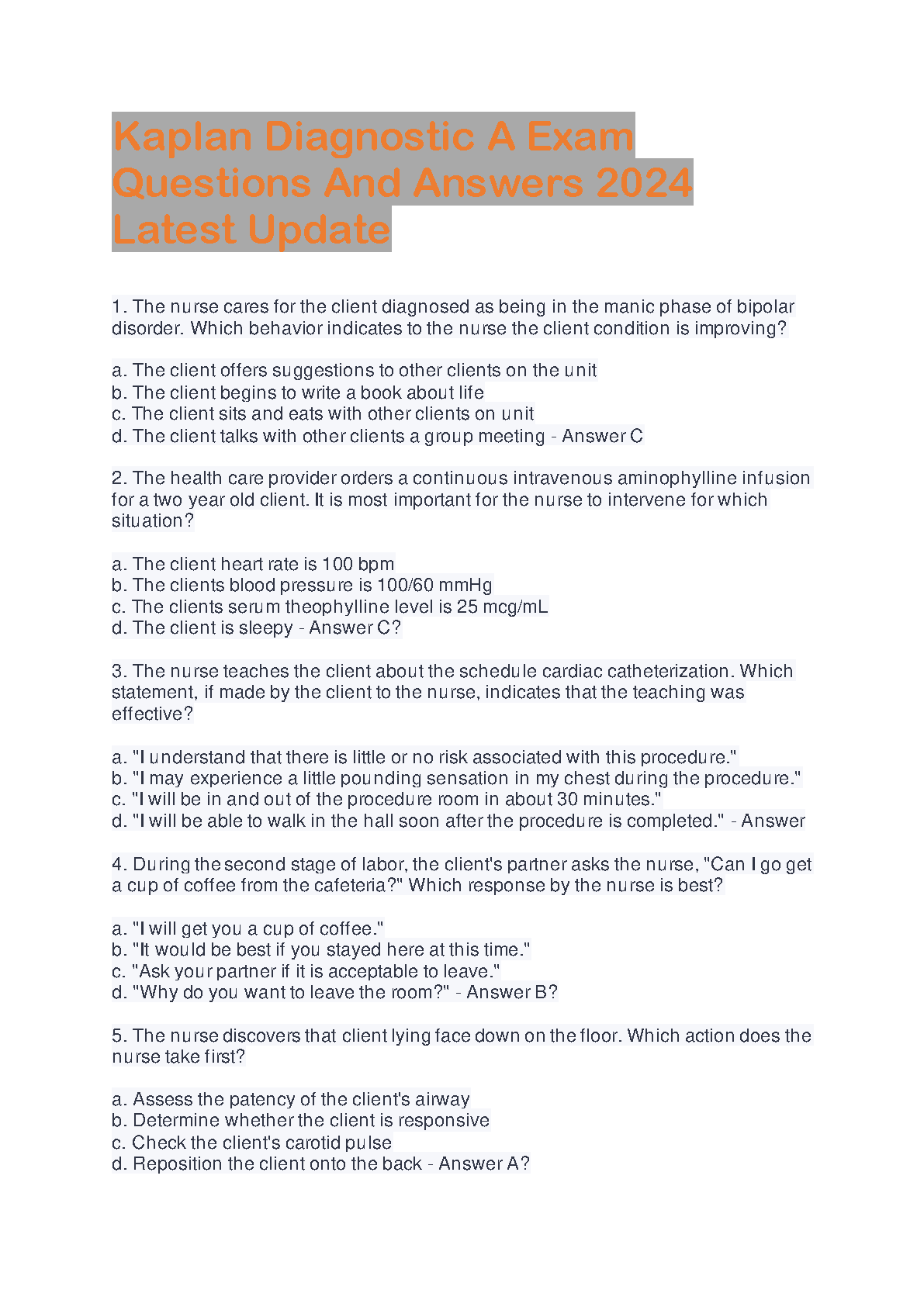 Kaplan Diagnostic A Exam Questions and Answers 2024: A Comprehensive Guide by [Author Names]
