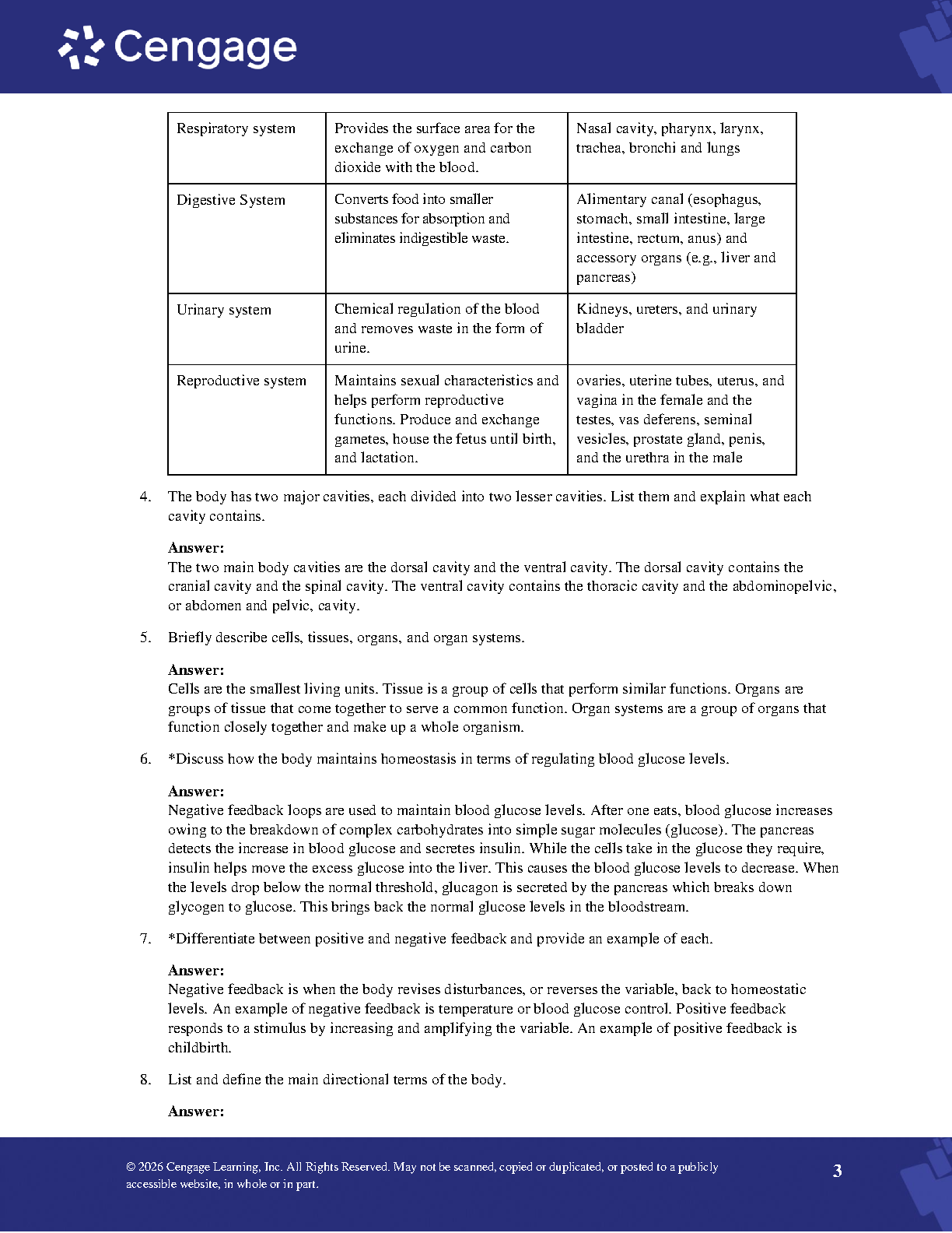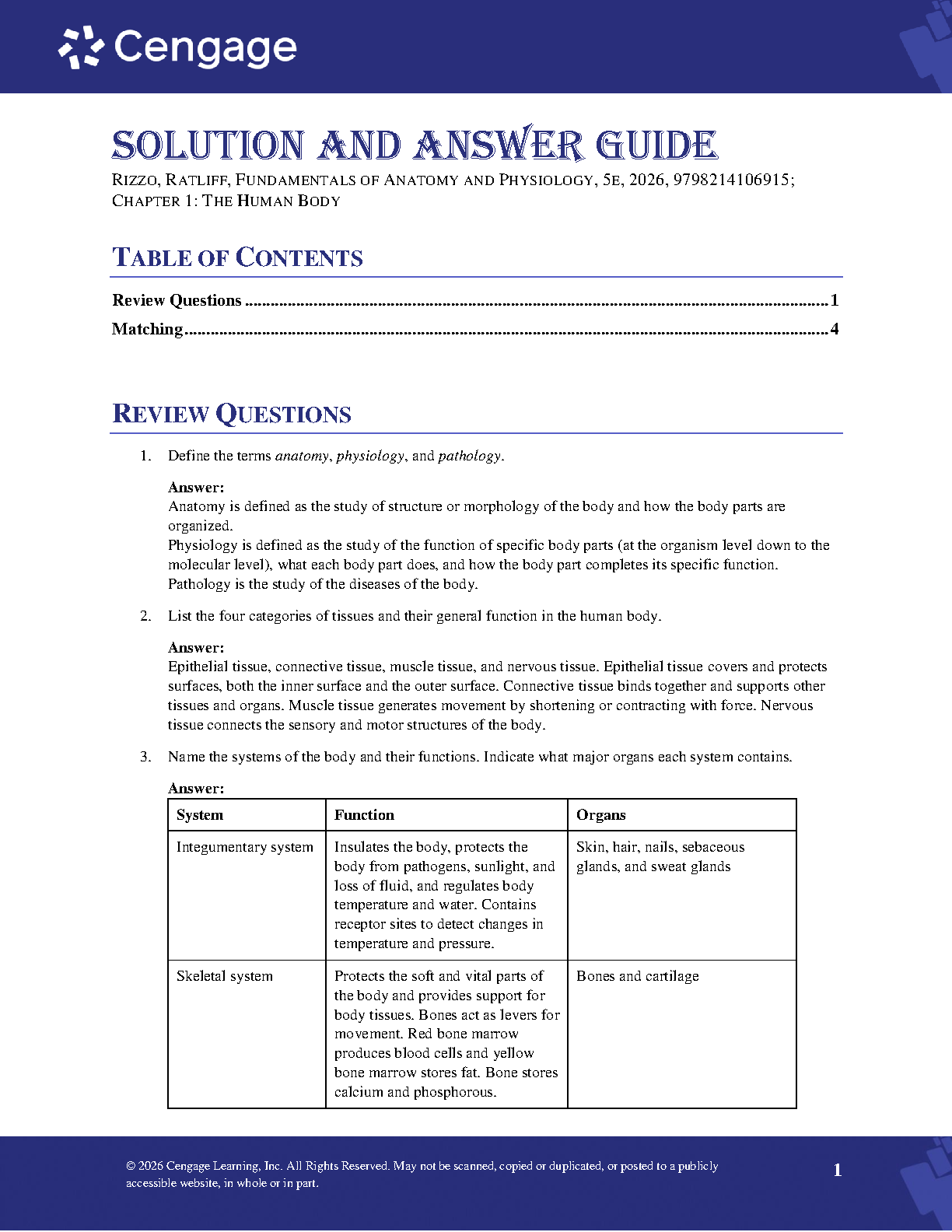 Rizzo & Ratliff's Fundamentals of Anatomy & Physiology, 5e: Solution and Answer Guide