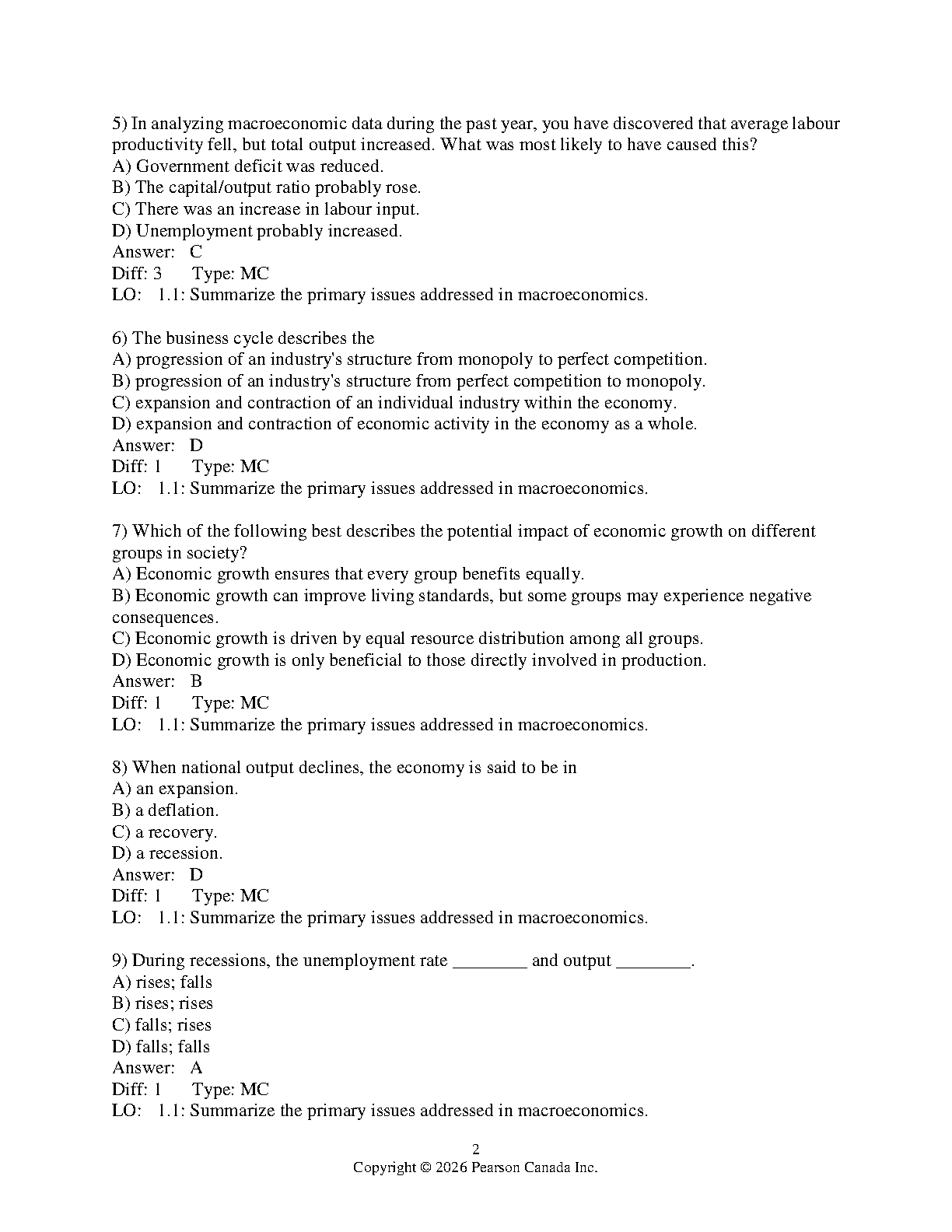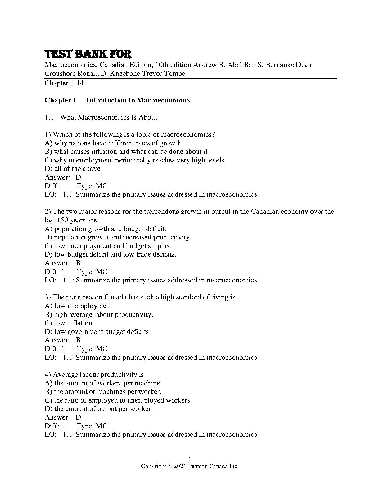 Ace your Macroeconomics exams with this comprehensive test bank for the Canadian 10th edition by Abel, Bernanke, Croushore, Kneebone, and Tombe. This resource provides practice questions and answers to help you master key concepts and avoid resits. Prepare effectively for the 2024/2025 academic year.