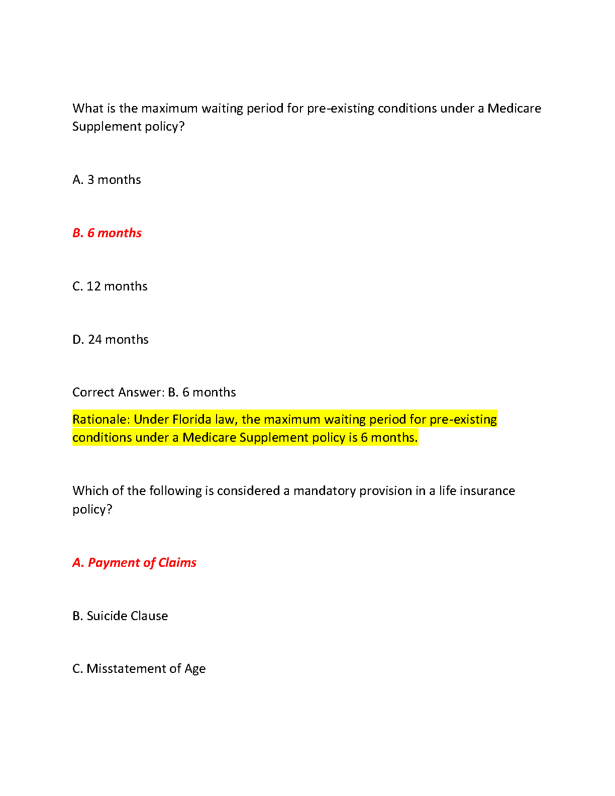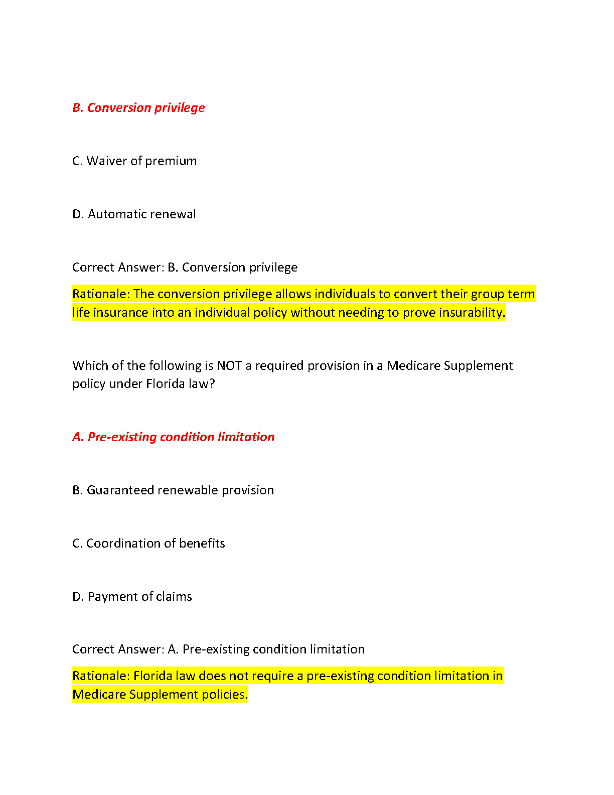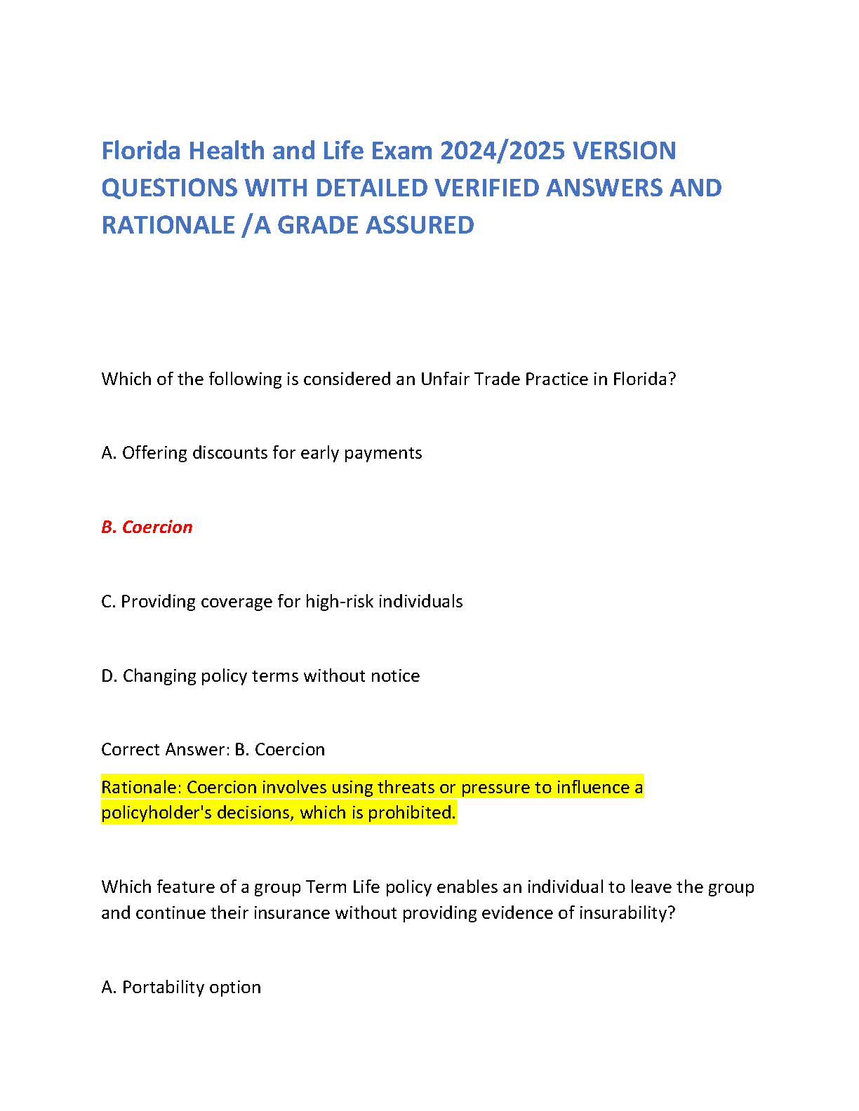 Florida Health and Life Exam 2024/2025: Questions with Verified Answers and Rationale for A Grade